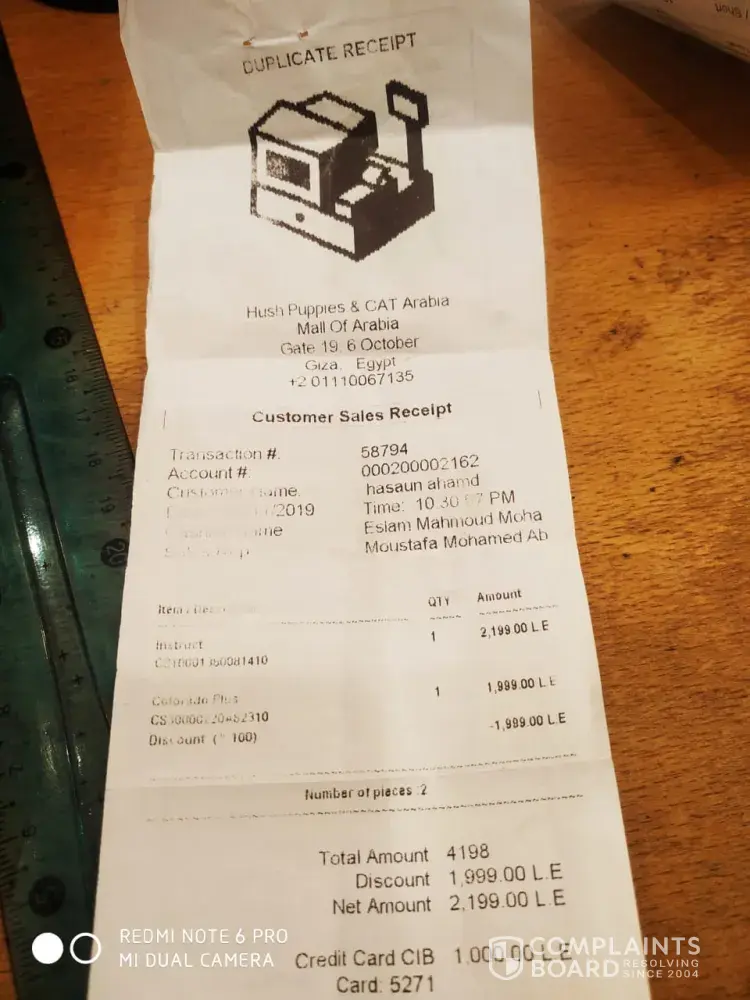 I bought a shoe from hush pappies store in Egypt Mall of Arabia branch on 1 october 20121