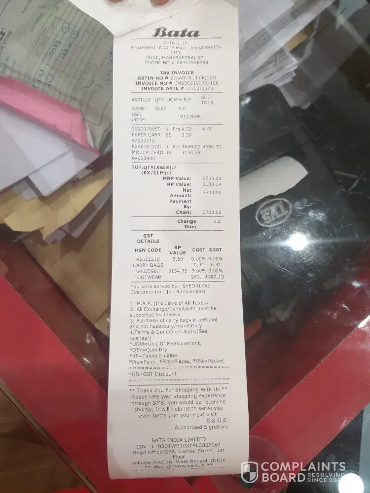 I had been to Bata showroom at Jayanagar 4th Block to buy Hush Puppies shoes and unfortunately the size required for me was not available. So the sale person advised me that he will get it home delivered and accordingly I went ahead with the purchase on the assurance that if there is any issue it should be reported within 7 days to them so that they can replace. Before placing order for size 6 shoe, trial was taken for size suitability with another model of Hush Puppies which had the same MRP and sales person confirmed size 6 will be apt for me. I ordered the shoes on 25 th Dec and received it on 26 th. On receipt, I noticed the color of the shoe which I had ordered was a dual color but received single color which is not an issue to me as even the one sent to me is acceptable, but the size 6 was found to be loose fitting. I thought I will be able to manage with it and tried the shoe one day but at the end of day my ankle started to pain and I felt it will be difficult to use. I would have hardly walked even for 1 km as I drove to my office and returned back. I was upright with Bata sales person and informed him, I have tried one day but he got back to me after two days stating his manager is not accepting for replacement as I have used one day. My question to Hush Puppies, as a customer before ordering the shoes, trial was taken with 6 size and that shoe was perfectly fitting for me and I fail to understand why the shoe delivered to me of 6 size is bigger. than the usual size. So I need your intervention to have this issue resolved