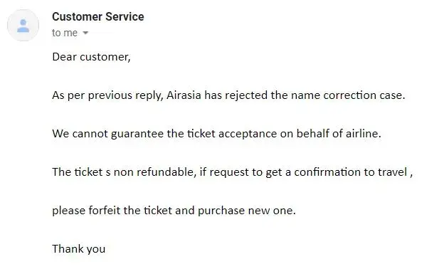 5) On the 3rd March, I've replied to them with the updated date which is 15th March to travel as they requested. But over 2 week, no reply, no answer or anything even with my follow-up email.