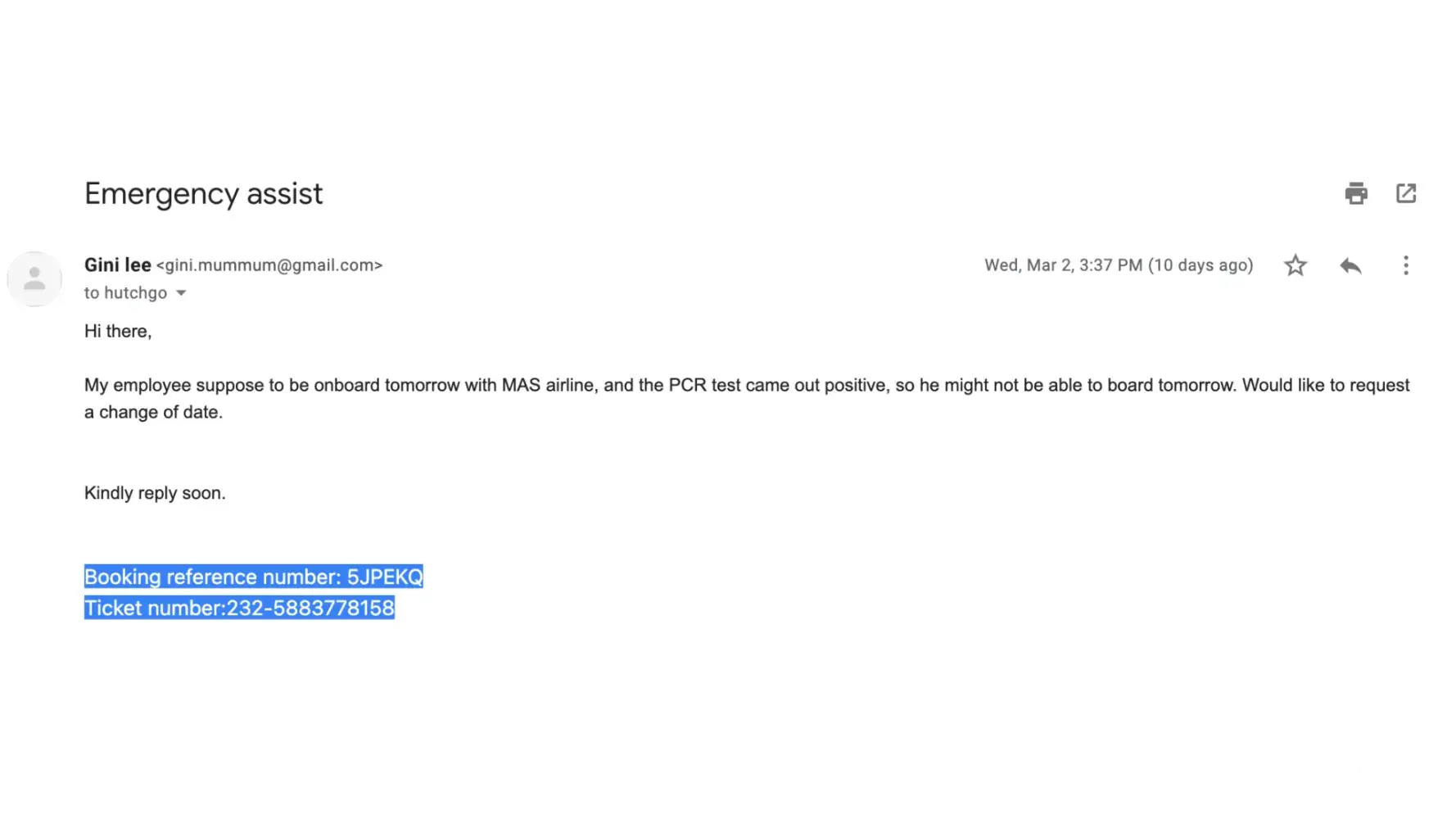 2) On the 2nd March, my employee got his PCR result and it was detected with covid positive. Immediately i email (the only way to reach Hutch Go) regarding on the result and ask if it was possible to reschedule due to unforeseen circumstances. As this ticket it's a "Light Ticket", it's not refundable and changeable but i just want to see is there any solution.