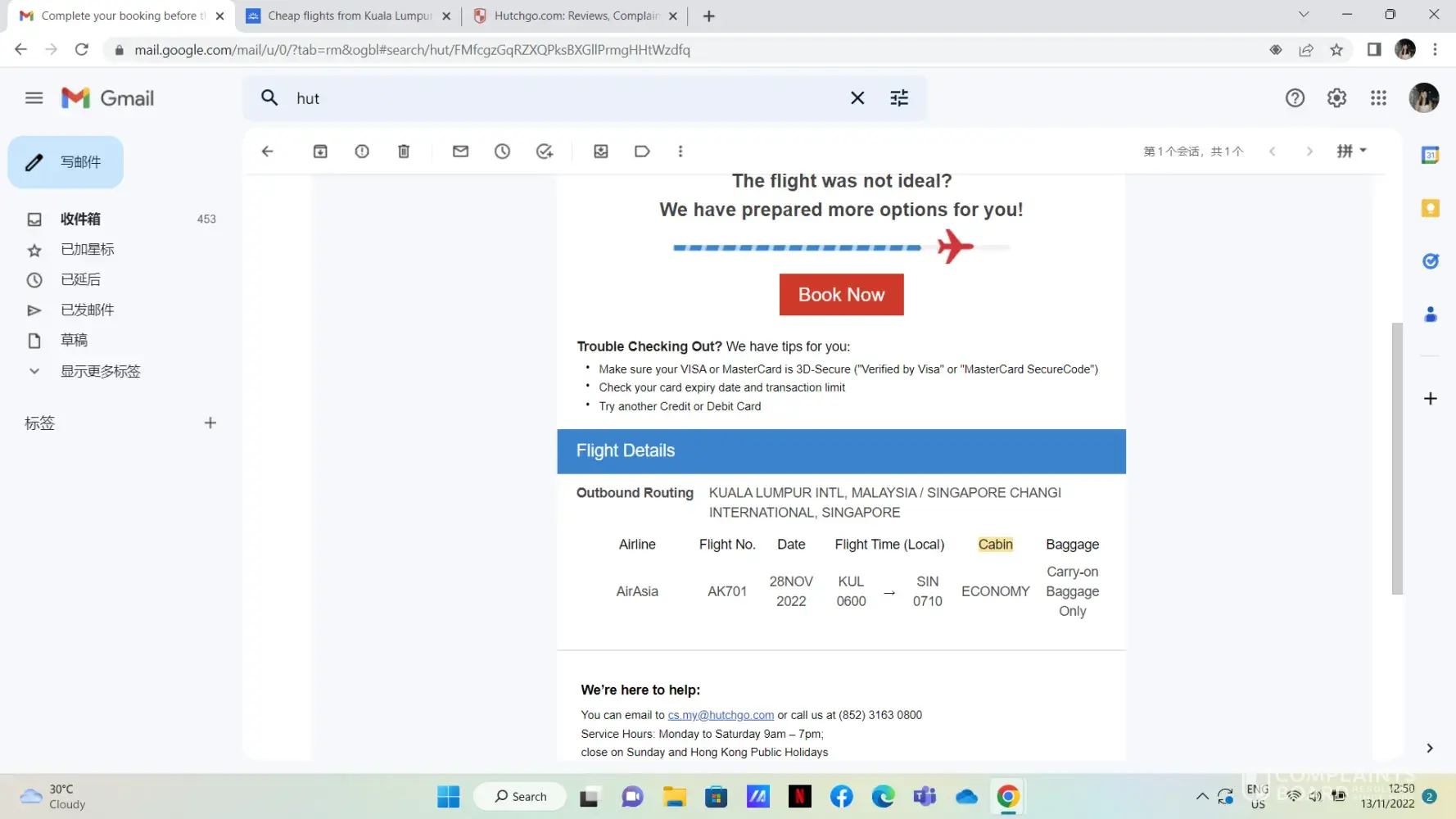 i have booked a flight on 7 may from johor to ipoh and returning flight on 8 may which both plane is from airasia. I have check that the timing for 7 may fight has changed on airasia side from morning to afternoon flight and hutchgo still didn't update me till now. Making believe that it is a scam agency as i also look on reviews on the web and everyone has been complaining about how they scam their money away and it still haven't reply my email for 2 weeks already.