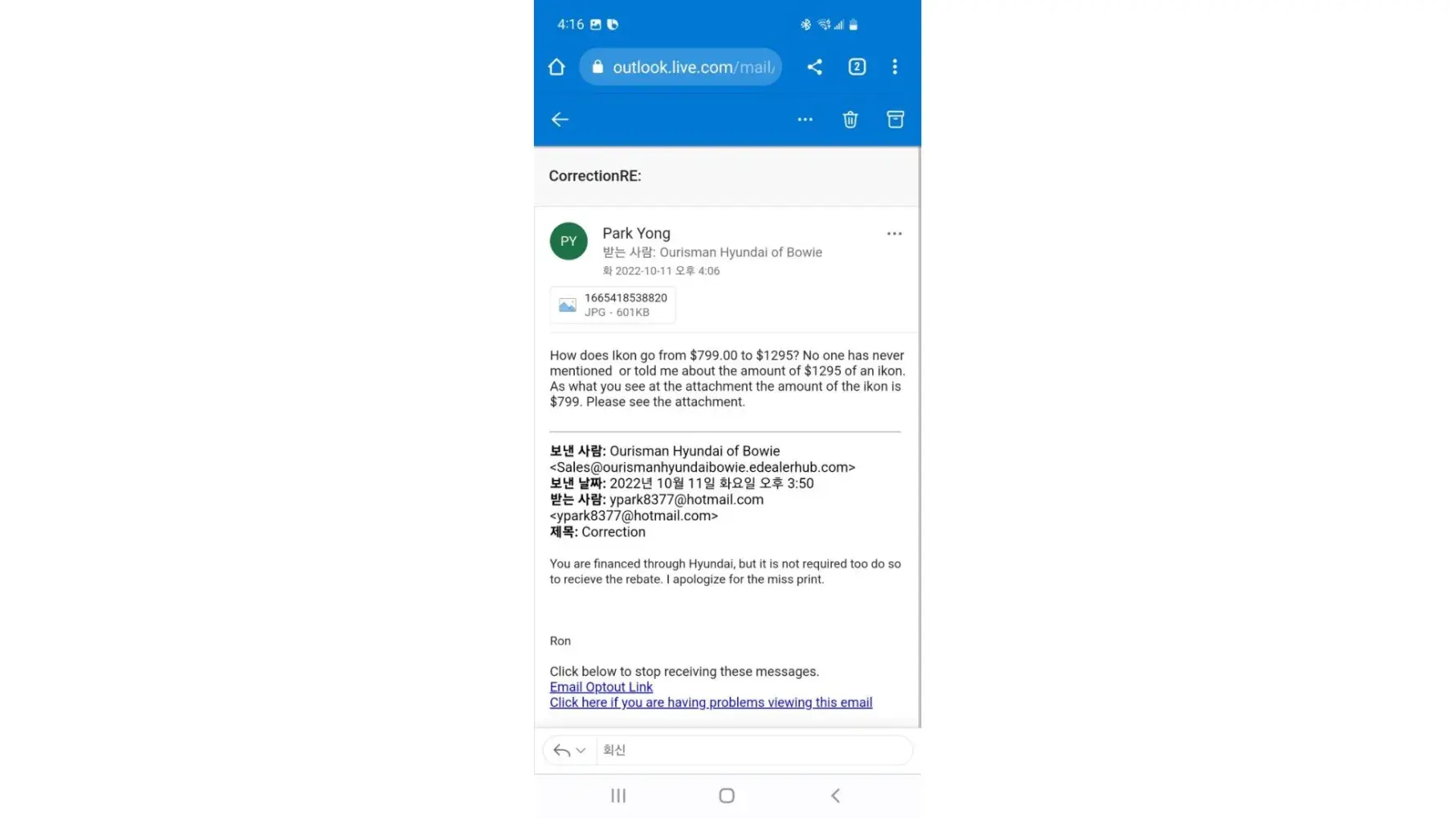 My mom purchased her new car here in Ourisman Hyundai of Bowie on oct 9th, 2022. My mom is old and is the first generation American so I was the one speaking to the salesperson and we agreed on the final out the door price over the phone. I was told that something called ikon (which cost $799) is attached to this car so including everything such as the doc, registration, tax, ikon fee would sum up to the amount that we agreed on. Salesperson texted me the offer paper with the agreed amount of the msrp along with the breakdown of everything. My mom deposit $500 to reserve the car and on the following weekend, me and my mom drove almost 2 hours to the dealership to pick up the car. I checked the pricing again before signing the contract and still have the copy of the offer letter with everything remaining the same, only differences are the changed date which was the day we purchased this car. We financed through Hyundai so we got $500 credit so I thought everything went good until I came home and saw the contract with the increased number of the msrp and my mom was up charged $500 extra. Obviously numbers are different and for fact they increased the amount as you will see on the attachment. I was being nice for couple of days looking for resolution, spoked to one of the manager whose saying that the price for the ikon is $1295 so the calculation is correct? I e-mailed him my copy of the offer paper that is listed as Ikon: $799, no one has ever mentioned or said anything about this $1295 ikon fee. I asked him where this $1295 is coming from because I can't find that number anywhere in my documentation. Until today no response. Check the offer MSRP. They increased the contract MSRP and there is nothing noted about $1295 ikon fee. Plus I don't even know if there is such a thing called ikon attached to this new vehicle bc we did not get any guide or booklet that explains about IKON. I am tired of playing this mind game back and fourth with this place. They took advantage of my mom because she is old and has a language barrier.