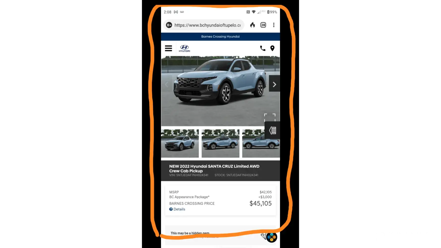 Shopping around for the 2022 Hyundai Santa Cruz AWD Limited. I've contacted several dealerships in Florida and everyone so far have either added market adjustments of 2k to 9k over MSRP or they're adding package and forcing customers to pay inflated price or no deal. Jenkins Hyundai of Leesburg FL is the worse. And so is Hyundai of Fort Meyers. They're adding things that are already standard with the limited trim. I've never paid more then MSRP and I've never owned a Hyundai before. I'm hoping this price gouging is stopped so I can buy my first Hyundai Santa Cruz AWD Limited ASAP.