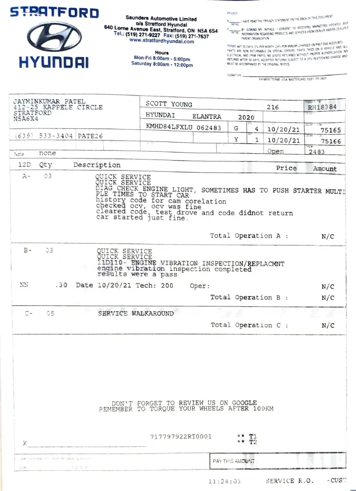 I (Jayminkumar Patel) own Hyundai Elantra 2020.I just had recent repair at Hyundai Showroom. I drove to Hyundai showroom multiple times over last few months due to recall letter I received from Hyundai.They mentioned they fixed issue but still I continue getting difficulty every single day.I did not pay lot of money to see this day.I regret on my decision that I bought such a garbage car from Garbage company with ridiculous helpless staff.If you people cant fix issue then reimburse me my money as per current market value so at least I can get rid off from you people or get me new car.Today (Nov 4/2021) I was driving to 401 Highway and my car all of sudden stopped working.I was lucky enough that there was no car behind me if its there what would happen to me? Who would be responsible for my accident?