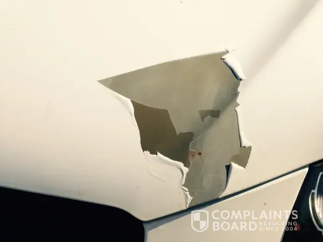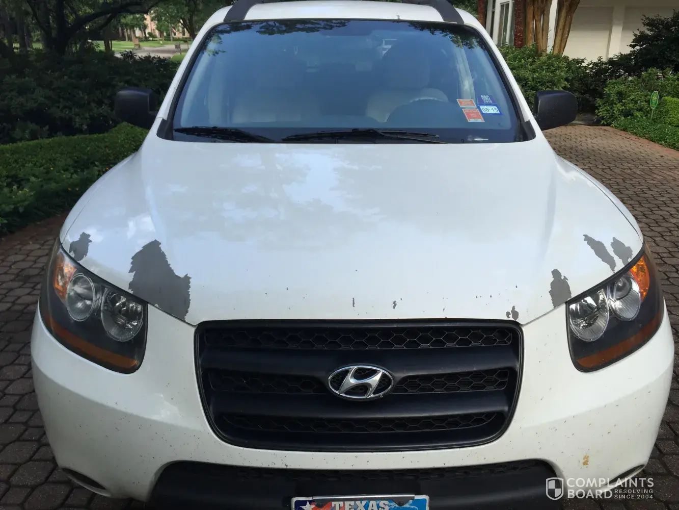 I have a 2009 Santa Fe. The paint is peeling off on the hood, roof and along side of the front windshield. The paint started peeling off after going though a very heavy rain storm. I feel the paint job was not done properly.