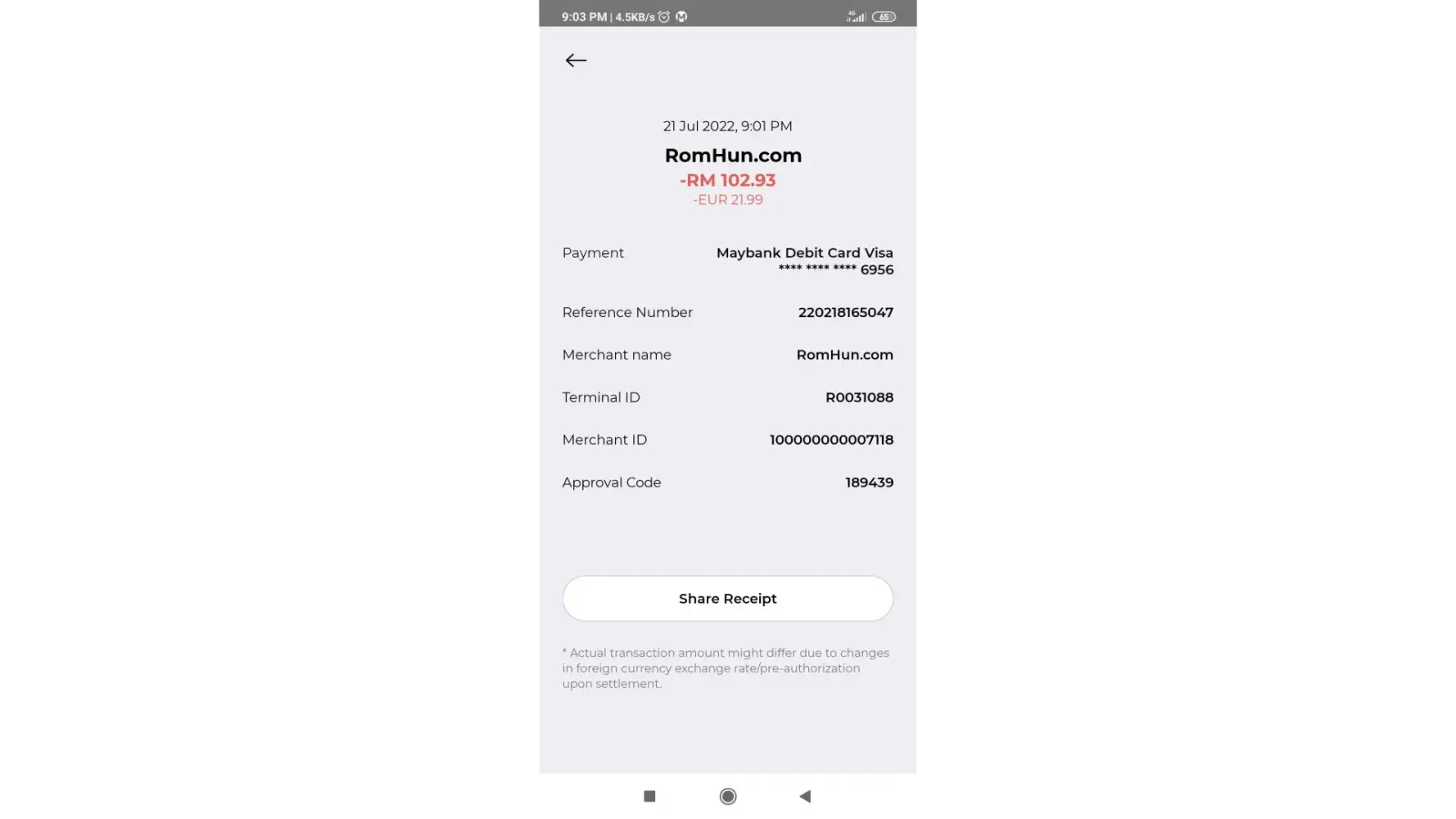 Date of transaction:NTD 873