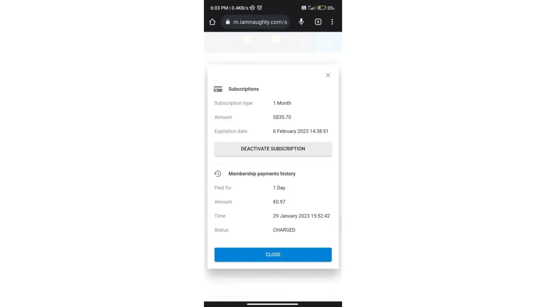 Signed up for 1 Day membership as a trail and unticked the box that says upgrade to a longer membership after the 1 Day membership ends. The site doesn't have any real accounts, just bots messaging you.