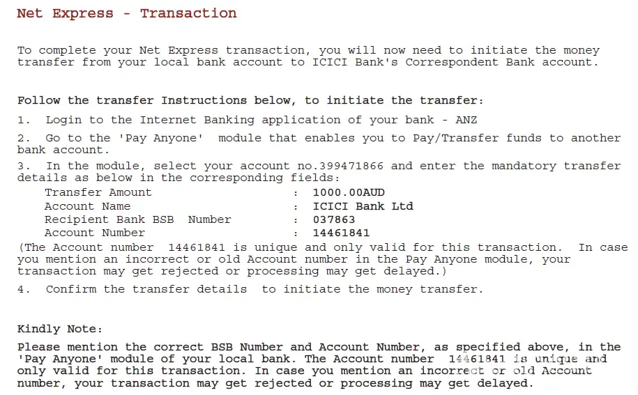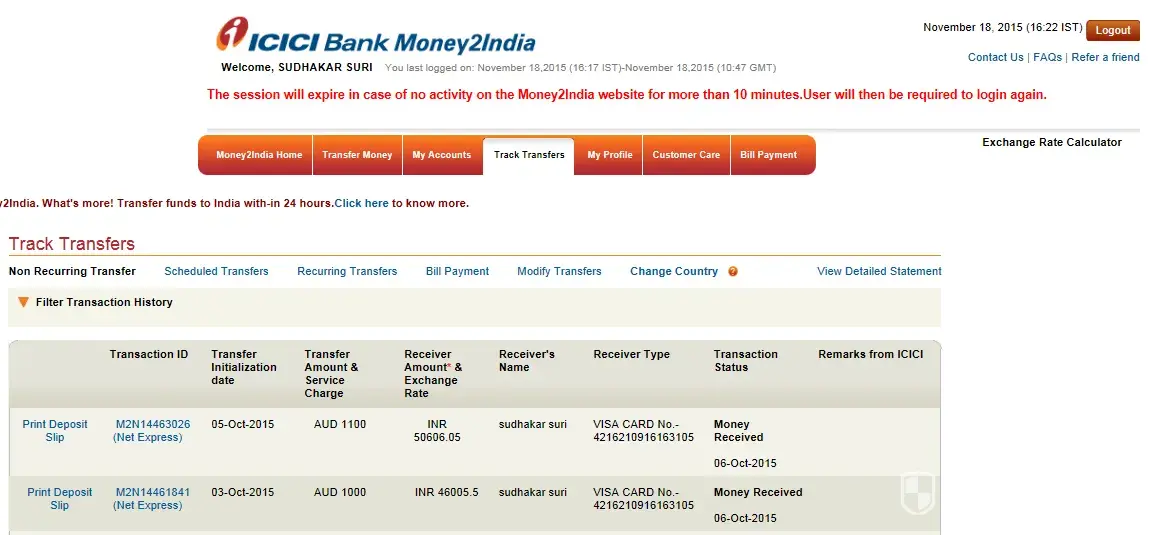 I called 20 times, I spent probably 10 hours at the phone, and nothing is going on. I requested my bank to get the funds back and with my lawyer we are hoping to solve this but just wanted to warn you, stay away from ICICI BANK AND THEIR SCAM CALLED MONEY 2 INDIA.