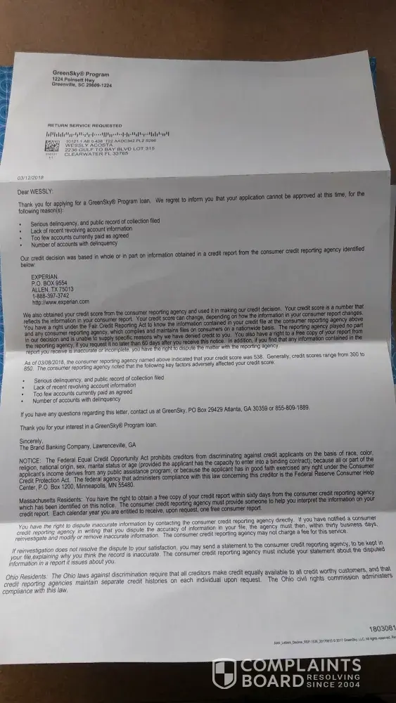 "Complaint in reference to services"