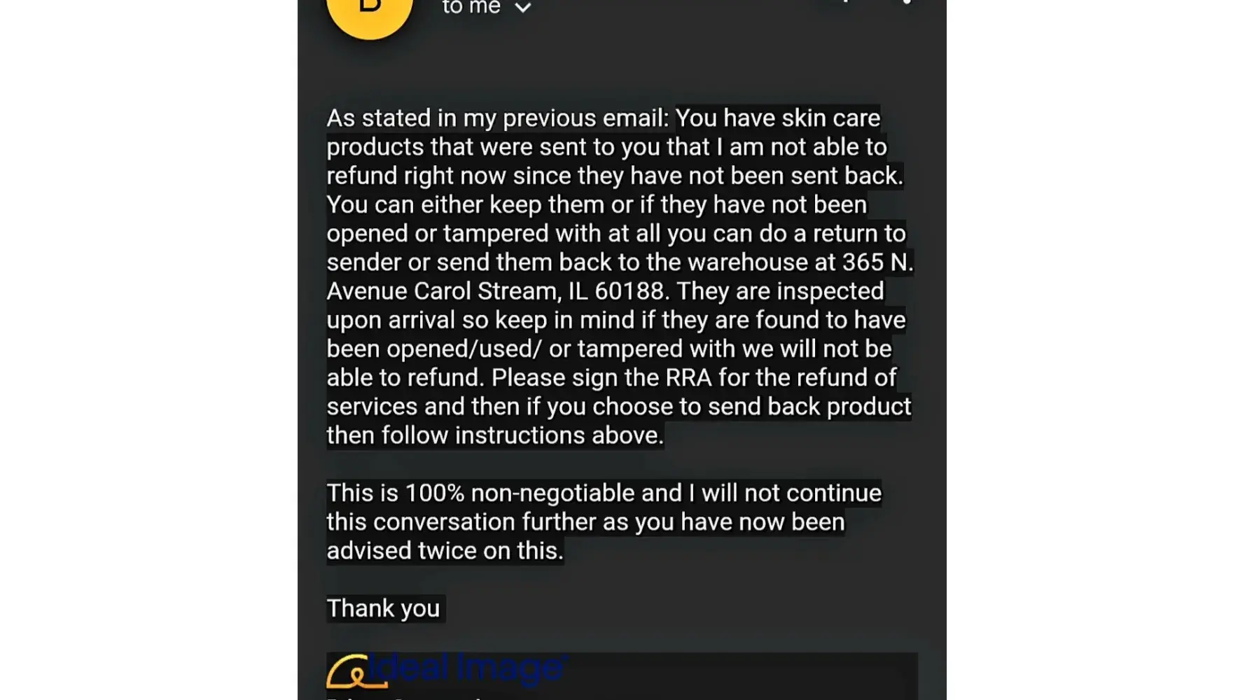 Did you get any resolution from Ideal Image?