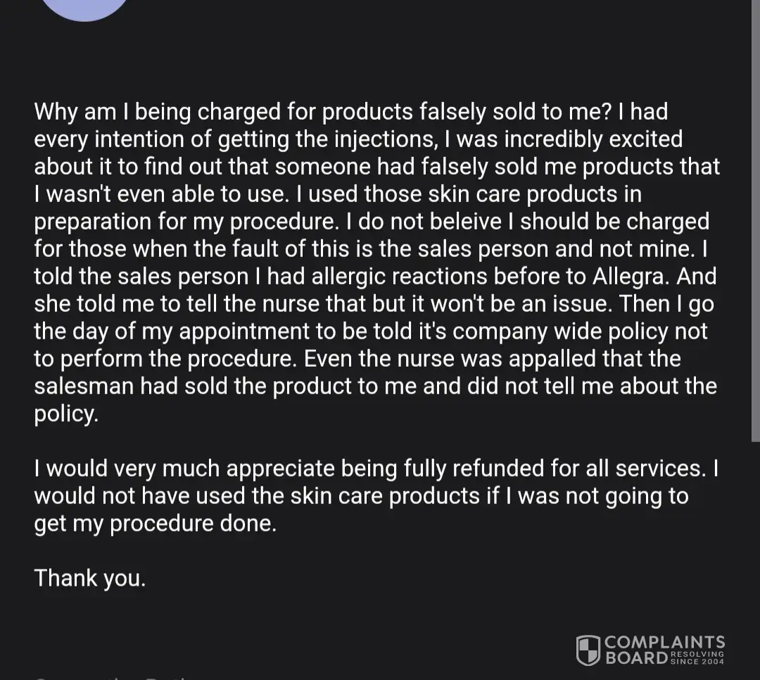 Yes. I purchased Juvederm fillers then it turns out I am allergic to it. I never used their service so I requested refund and they said it was non refundable. So I have to switch to Botox. Never used it either. Just want the refund. Horrible place! My email address: phoenixflower888@gmail.com