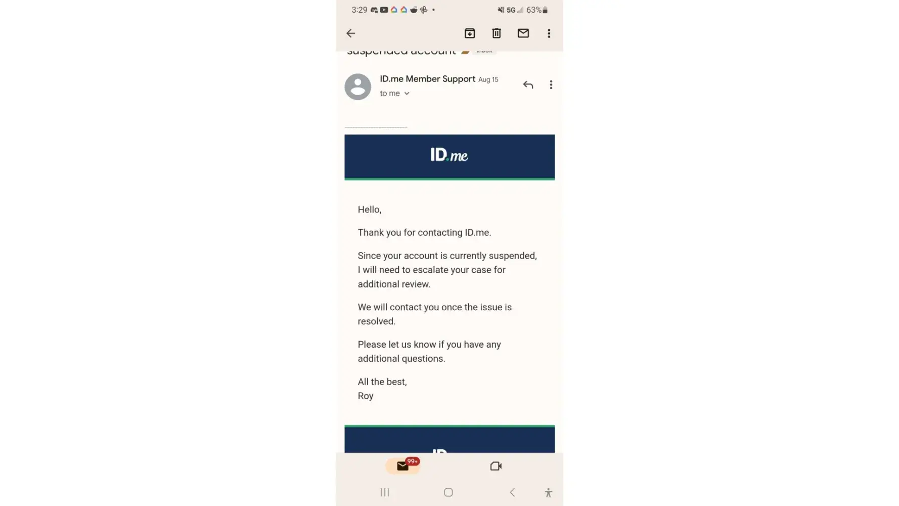 Account Suspended, no one from ID.me has reached out in last two weeks