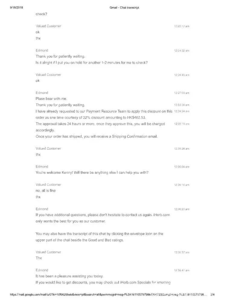 3rd, I contacted iherb cs, they advised me to re-order again because I should entitle the discount, and they will submit the request and pending approval for 24 hours, details please refer to image provided.