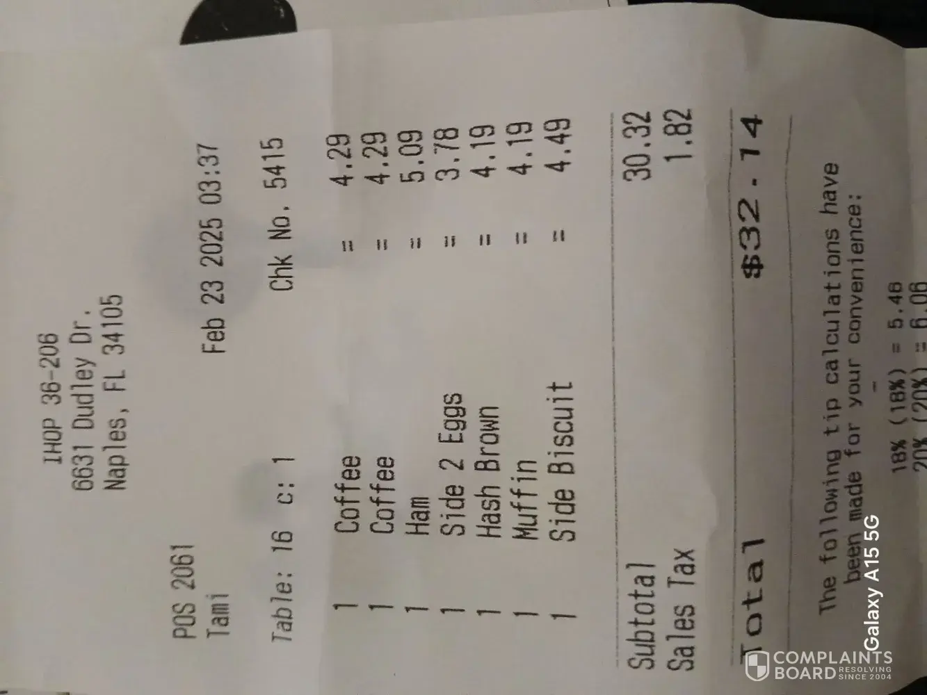 We just came from having breakfast at 6631 Dudley Dr. Naples, FL.34105 at 3:40am on 02/23/2025. First would like to say in the all the times we have gone to any of your IHOP restaurants this one has been the worst ever. When we sat down and the waitress got us the coffees, she asked if we were ready and usual I started to tell her our order, which like...