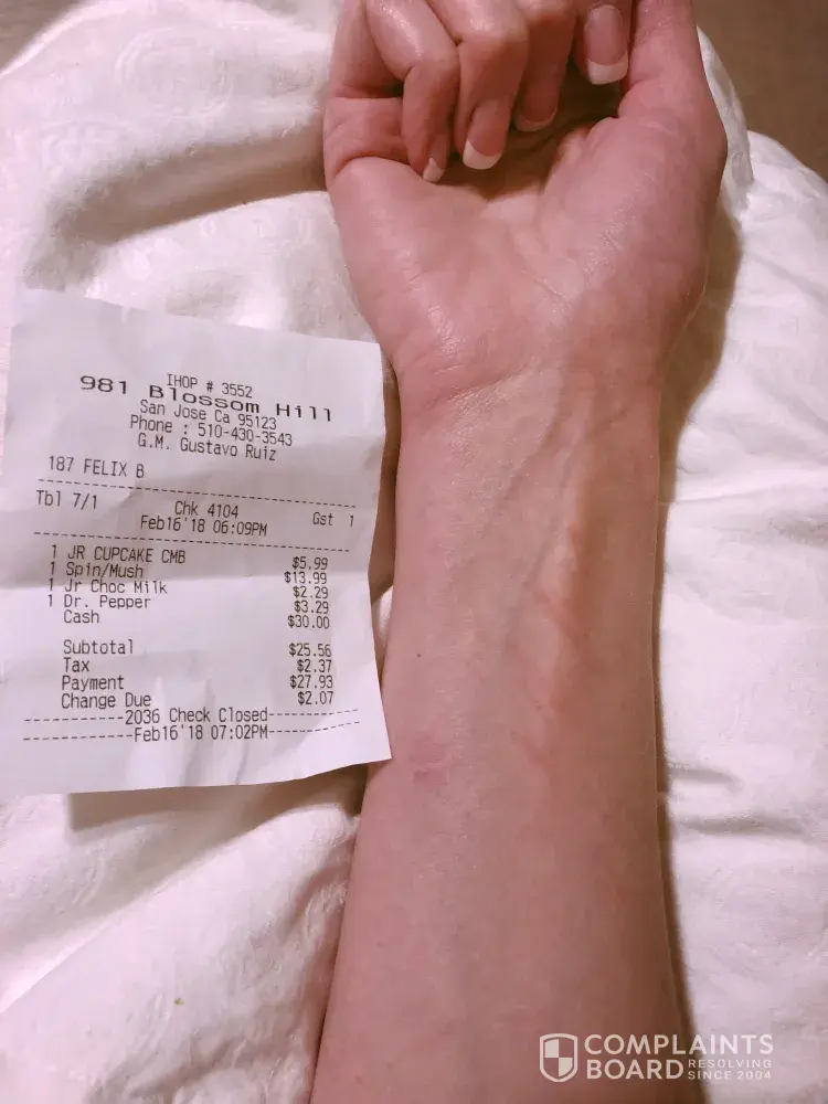 Did not receive a receipt, so I have no idea if they corrected the bill. Also did not receive the five dollar coupon for ordering online, and making an account. Very disappointed, as we've ate here many times and had a good experience, but this was ridiculous. People of volusia county, avoid this ihop, because their staff does not no how to do their jobs.