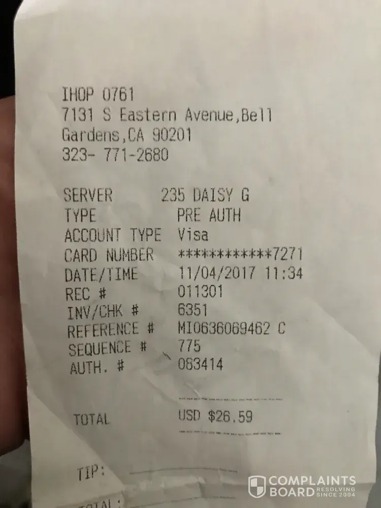 Today Nov.4 my family and my self we decided to go and have breakfast at IHOP in Bell Gardens Ca 90201! I came in and I said my name and for how many people so I'm there waiting and then i see the lady in front calling everyone that came after me and I go and I ask her I think it's not far that I'm here waiting for almost 1 hr and u keep calling people the came after me and she said oh okay I'm really sorry! Okay that happen after they seat me down in my table we having breakfast I get up to go to the restroom with my kids when I came back they already had pick up everything from my table when I told the lady that it was helping me I will be back am take my kids to the restroom! And she said okay ! After I told her that I came back to my table and my table was already clean ! I think this is not professional . And I'm really upset ! 😡😡😡😡😡😡They didn't give me any discount nothing and that's why I'm doing this complaint...