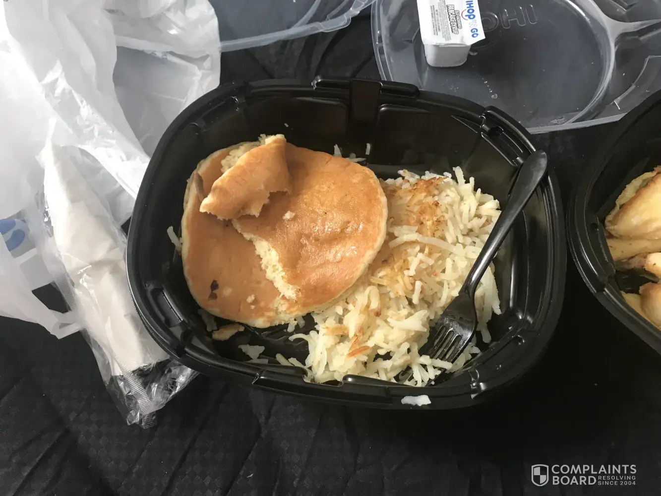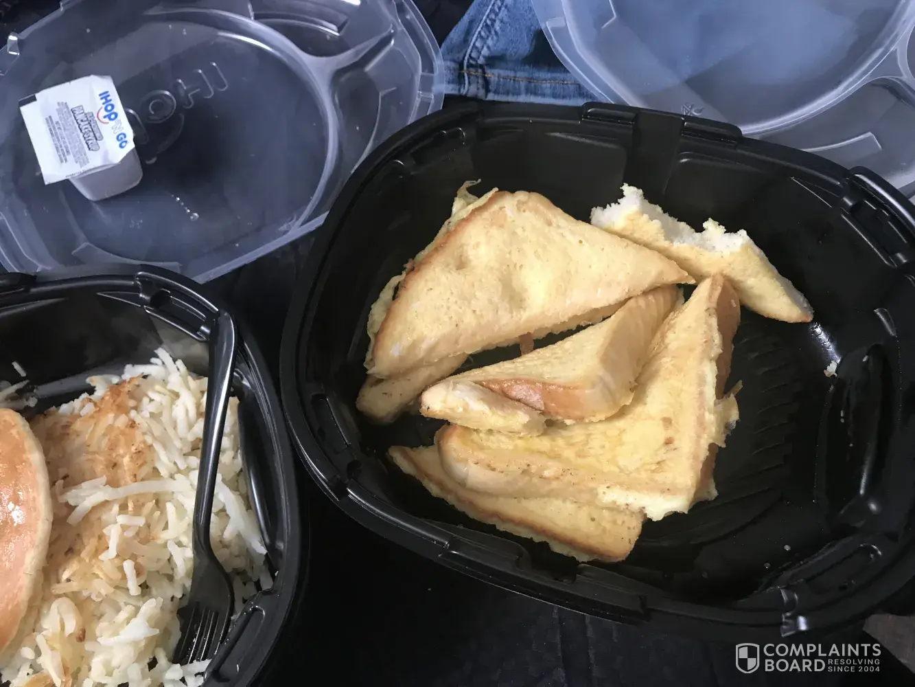 I received 2 PLAIN pancakes and PLAIN French toast when I went to pick up the order AFTER I complained that the order was incomplete.