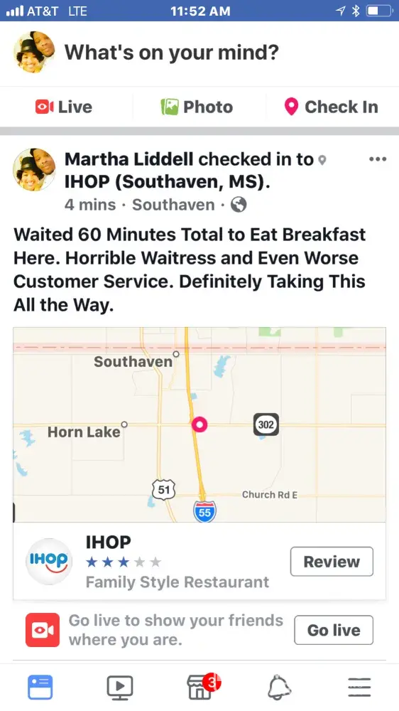 Their behavior is totally unresponsive leaving us no choice but to contact our attorney; however I wanted to inform corporate of how badly we had been treated at iHop Restaurant in Southaven, MS. We are outraged by this incident.