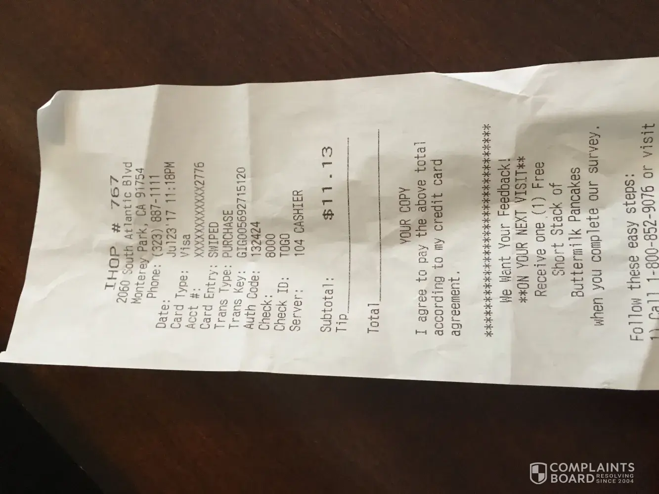 We went to ihop on Belair road in Baltimore maryland thus morning our bill came to 58 and some change we paid 25 in cash and the rest on a visa card they gave me a recipe for the 33 and change signed it then got home and found the 25 dollars was also charged to my account putting it into overdraft. We call the manger who was very rude on the phone with my girlfriend, very dissapointted with the service we received at this location. I feel it could of been avoided but I will never go there again along with anyone in my family I feel like my money should get put back in my account not very happy at all with the manger either