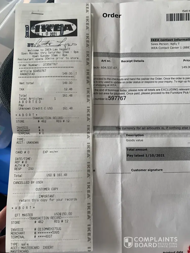 This message pertains to a complaint regarding continued, yet unsuccessful, attempts to return an online IKEA purchase I have not used and need to return asap