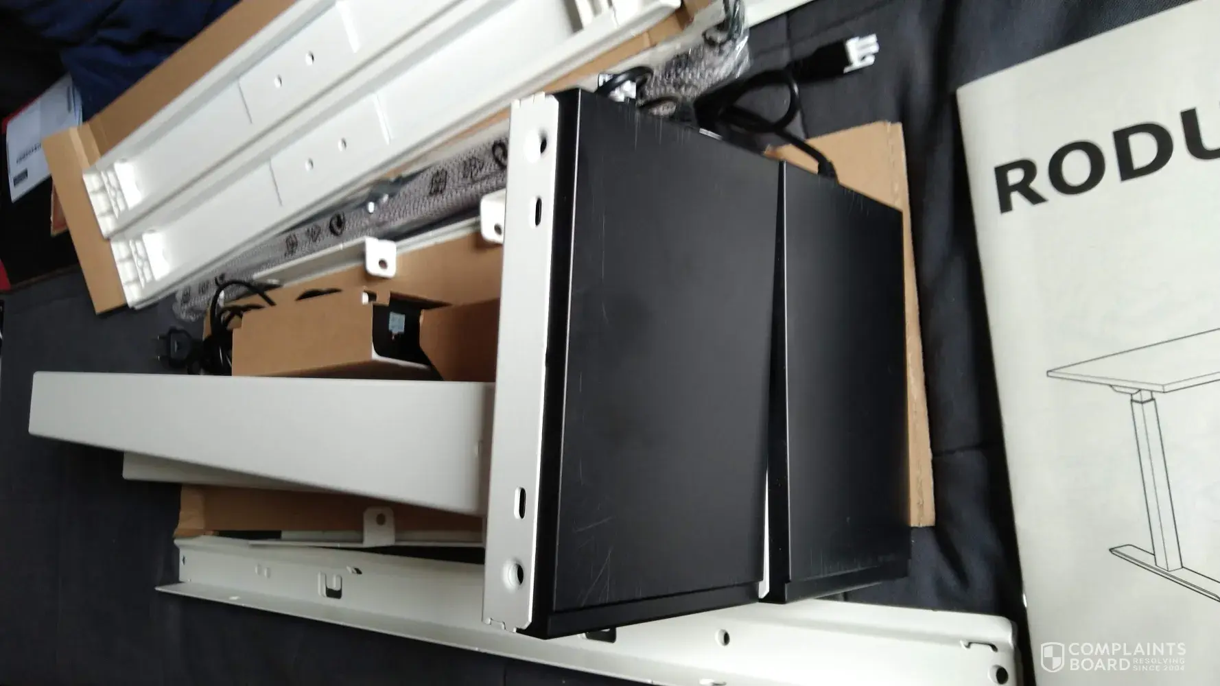 I've recently purchased a brand new Rodulf Standing Desk and the black surface on the footposts were scratchedscuffed when I unboxed them, as you can see from the attached pictures.