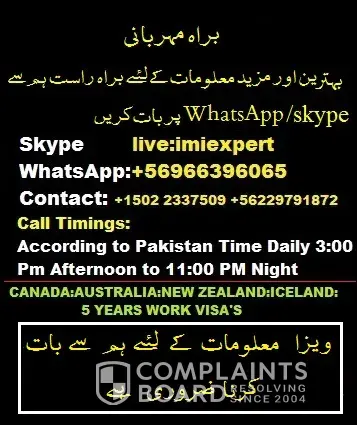 Sir i contact on Skype ID 'imiexpert' he told me about requirements i send my documents on Email Address [protected]@gmail.com then he show me Canada e-visa on Skype then he demand for 500$ visa charges advance under the name of Hina Hussain by western union then he don't give any type of visa for travelling and now he blocked me for asking about my money again and again. Kindly block imiexpert he is still doing scam with people.