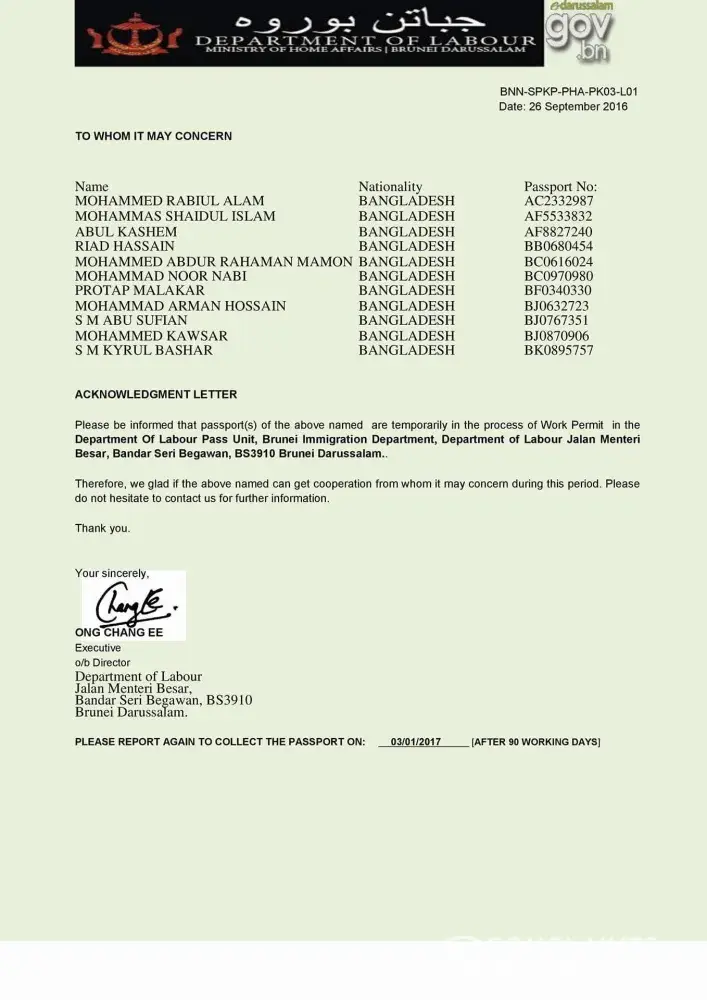 Collected people and take money against Brunei visa processing expenses.
