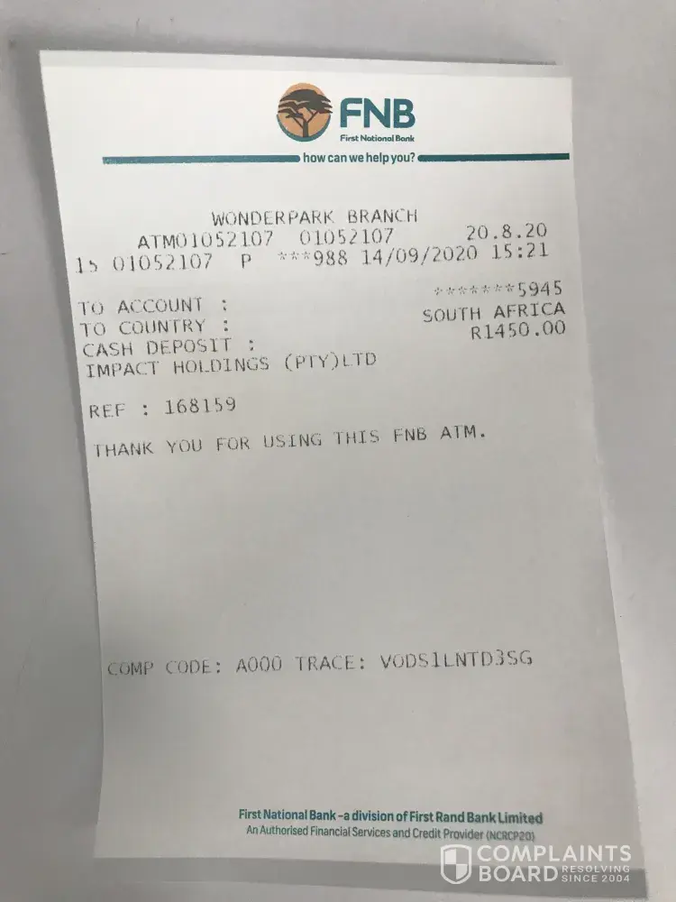 To add further insult to injury today’s account shows that my deposit is increased to R 1600, thereby bringing my deposit to R 2 800.