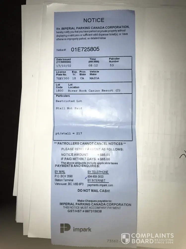 I called impark office as well on same day and customer service rep took my details and assured that I will get a call from them regarding this matter. Since nobody called and reacted to this matter until now. So filling an online complaint regarding this.