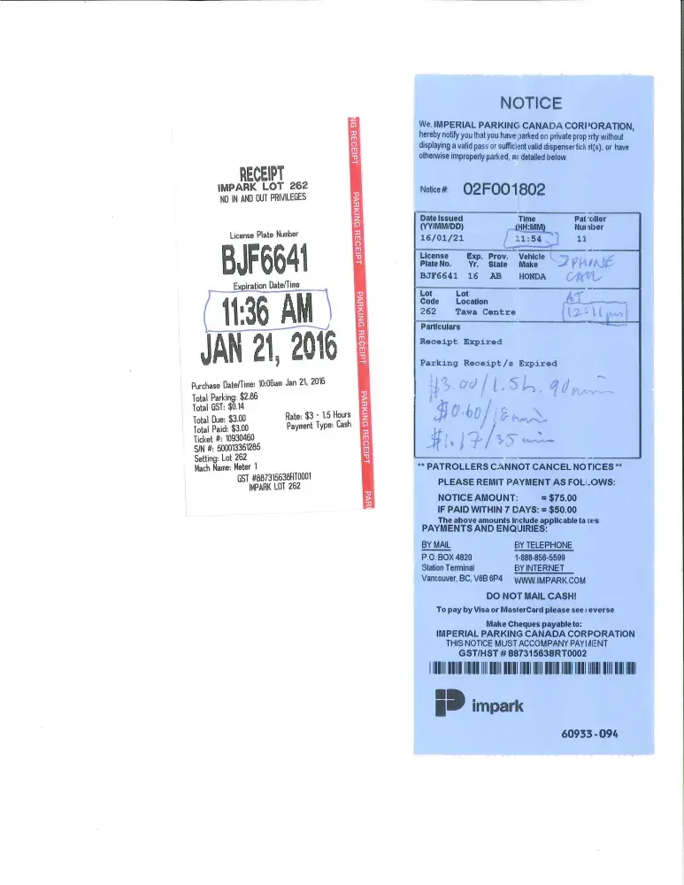 Impark Parking expired receipt