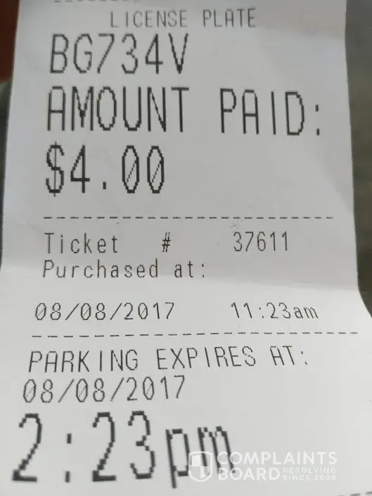 The man told me I would have to contact IMPARK with the toll free # on the back of NOTICE and sure enough after wasting 30 minutes on hold I was able to get a hold of a person at IMPARK that really did not care to help me in anyway whatsoever and told me she could reduce the fee down to $39.00 lol! The entire ticket was $42.61 wow what a huge savings! Bunch of ###s if you ask me. I have been driving for 18 years and have parked in pay parking many times and I never experienced this bad of a service. They are very deceiving and have nobody that you can easily access to get help. I encourage them to even try to collect $42.61 or $74.15 lol, if its not paid in a week:))