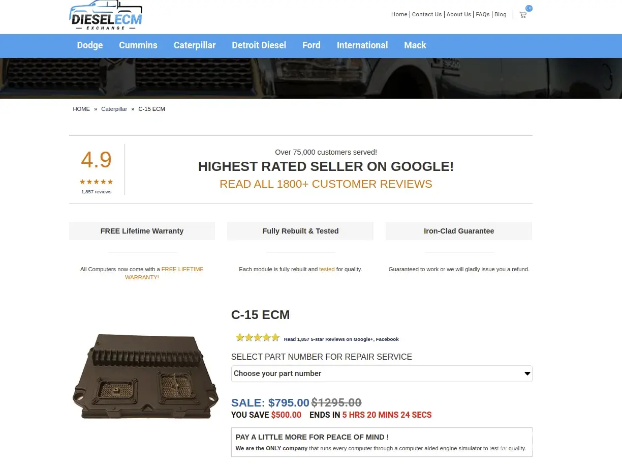We sent our ECM in for repair and paid $795 for the repair. They advertise a lifetime warranty. The ECM was faulty upon arrival. It appears they just spray painted it black and put warranty void if removed stickers on it. We were told on the phone to send it back for testing and warned that it sounded like the processor was bad which was not covered under warranty and would cost an additional $1500. We sent the ECM back, but had to do so at our expense. Since we received confirmation from UPS that the ECM had arrived, we have had no response from the company either by phone or email. So now they have taken our money, sent us a faulty product, not warrantied their product, and now we dont even have a broken ECM to have repaired elswhere. The truck has now been down for 4 months.