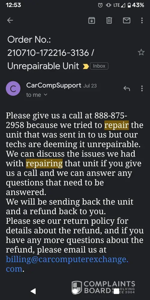 I have been fighting with Carcomputerexchange.com to get my money back ever since! These people continue to give us the round around.