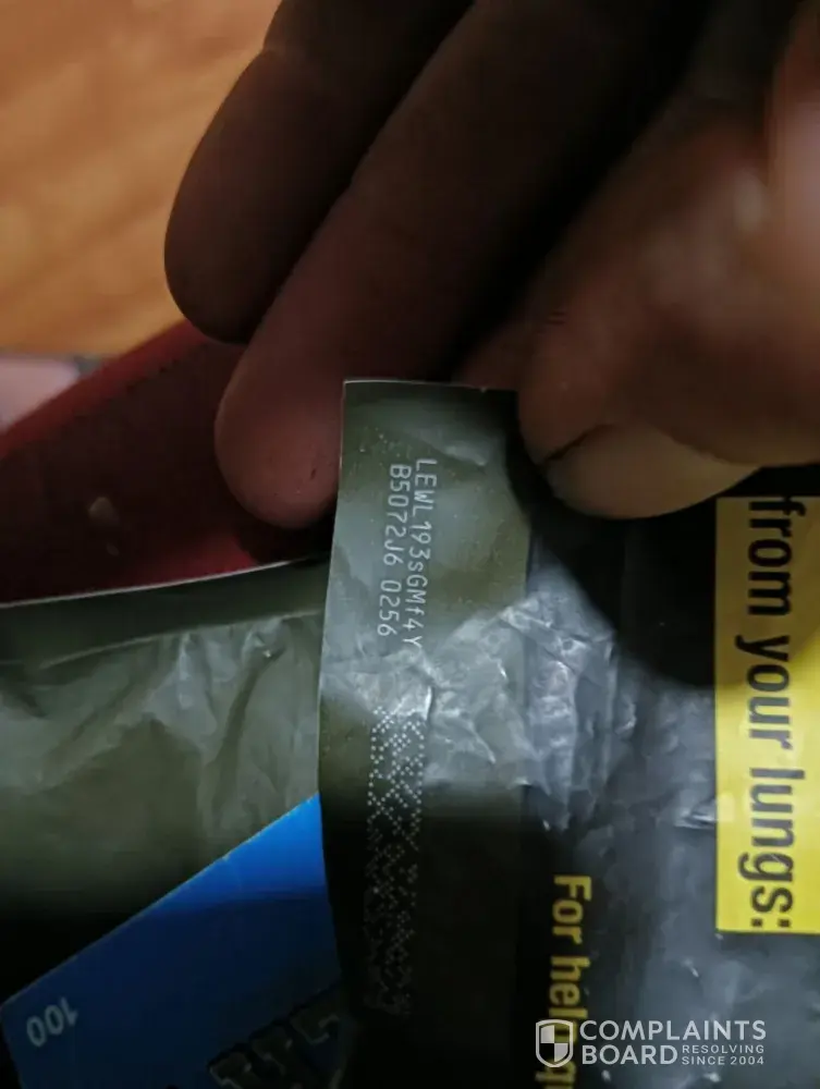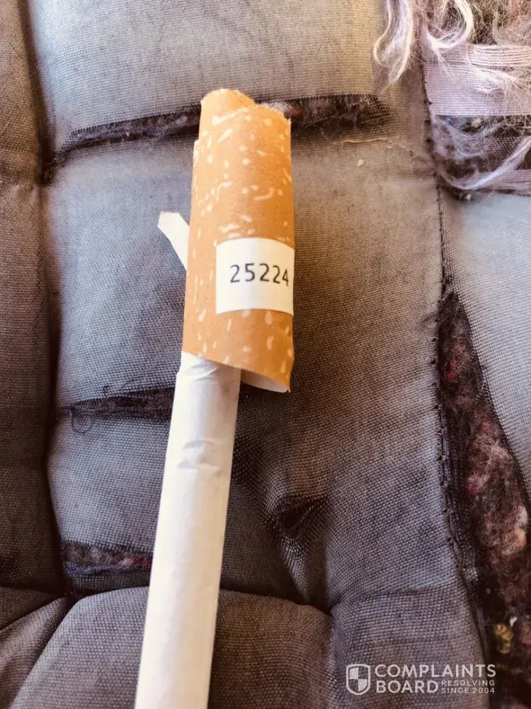 When I purchased my next packet these cigarettes were exactly the same, if not worse. From this second packet I have 3 half smoked cigarettes. I have attached a picture (the quality is so bad I’m not sure picture is the correct word). There was discoloration around the holes in the filter and the cigarette had unusual burn patterns on the outside.