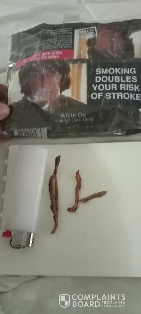 I brought a pouch of white ox 25g and it has big Branch bits in alot more then usual and I'm unable to smoke the bits Ive taken photo's in of and I'm not happy as it cost alot if money to buy this tabacco and shouldn't come as poor quality as this my name is