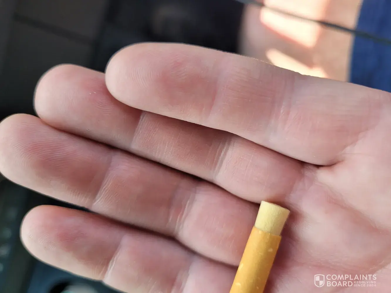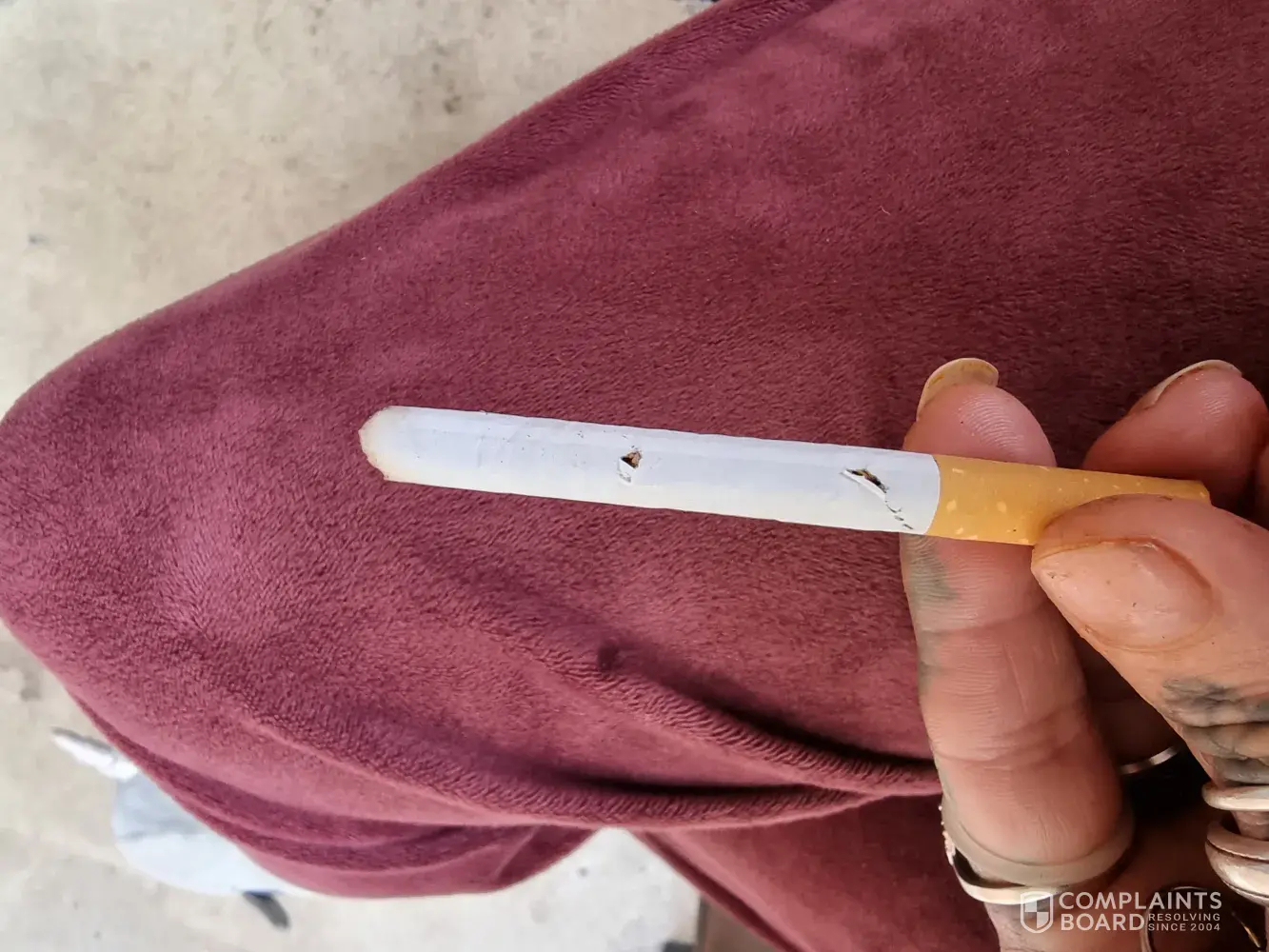 Hi there... I have had yet again another dud cigarette in my packet of 20s... I buy a week's worth at a time but seem to get at least 1 bad smoke in every 3rd pack the last couple months... I let it go as I know not everything can be perfect but I kept this one to show... A lot go out easily or are not wrapped on filter properly... This is my 2nd one in past week that is broken... I lit it and didn't see the issue til I looked to see why I couldn't work it properly... As you know they aren't cheap and all costs so wondering what can do about it or refund as having hole and slit in them isn't fair especially when aren't cheap...