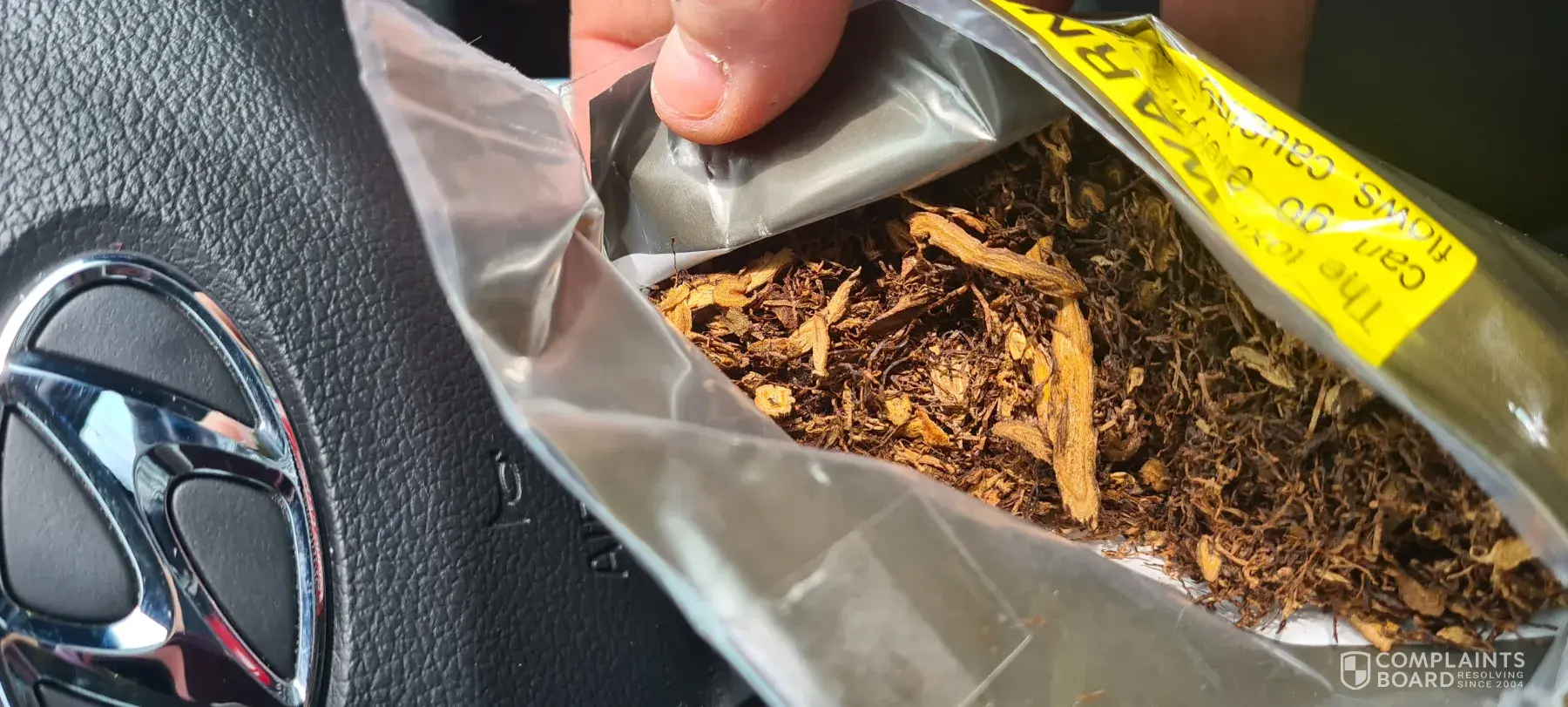 I found something that looks like tar in my 50gram packet of rolling tobacco it doesn't look like a lot but with the price of tobacco ATM it's annoying more then anything but also I thought it's something that should be brought to your attention. I purchased this at the BP service station in castletown not sure if it's a 1 off or it's in multiple packets of rolling tobacco