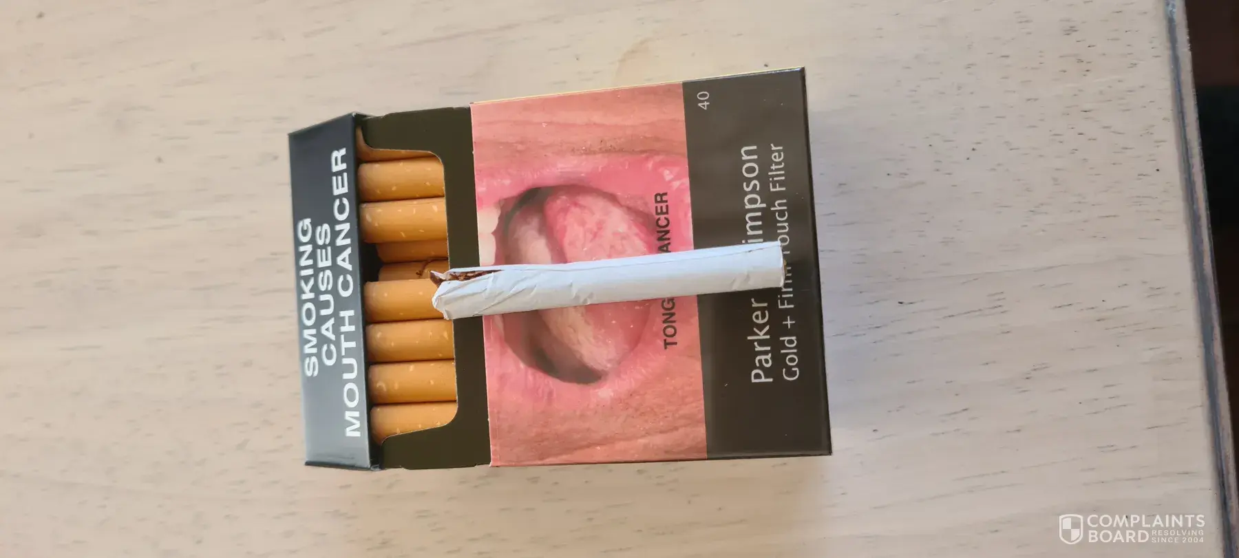 Been smoking Parker & Simpson Red cigarettes for about 3 years now. Had the occasional cigarette with a tear in the paper somewhere along the cigarette which would effect the way the cigarette is consumed, nothing to complain about until today when I bought this park of 20's, about Halfway through the packet of cigarettes I noticed the filter end of the cigarette was getting moist quickly and felt weird in my mouth. Then I noticed the problem when I looked at my remaining cigarettes. See pictures attached. The filter end of the cigarettes have the "rolled paper" around the filter fitted incorrectly, over hanging on several cigarettes by 2-8mm. The quality and consumption of such was effected.