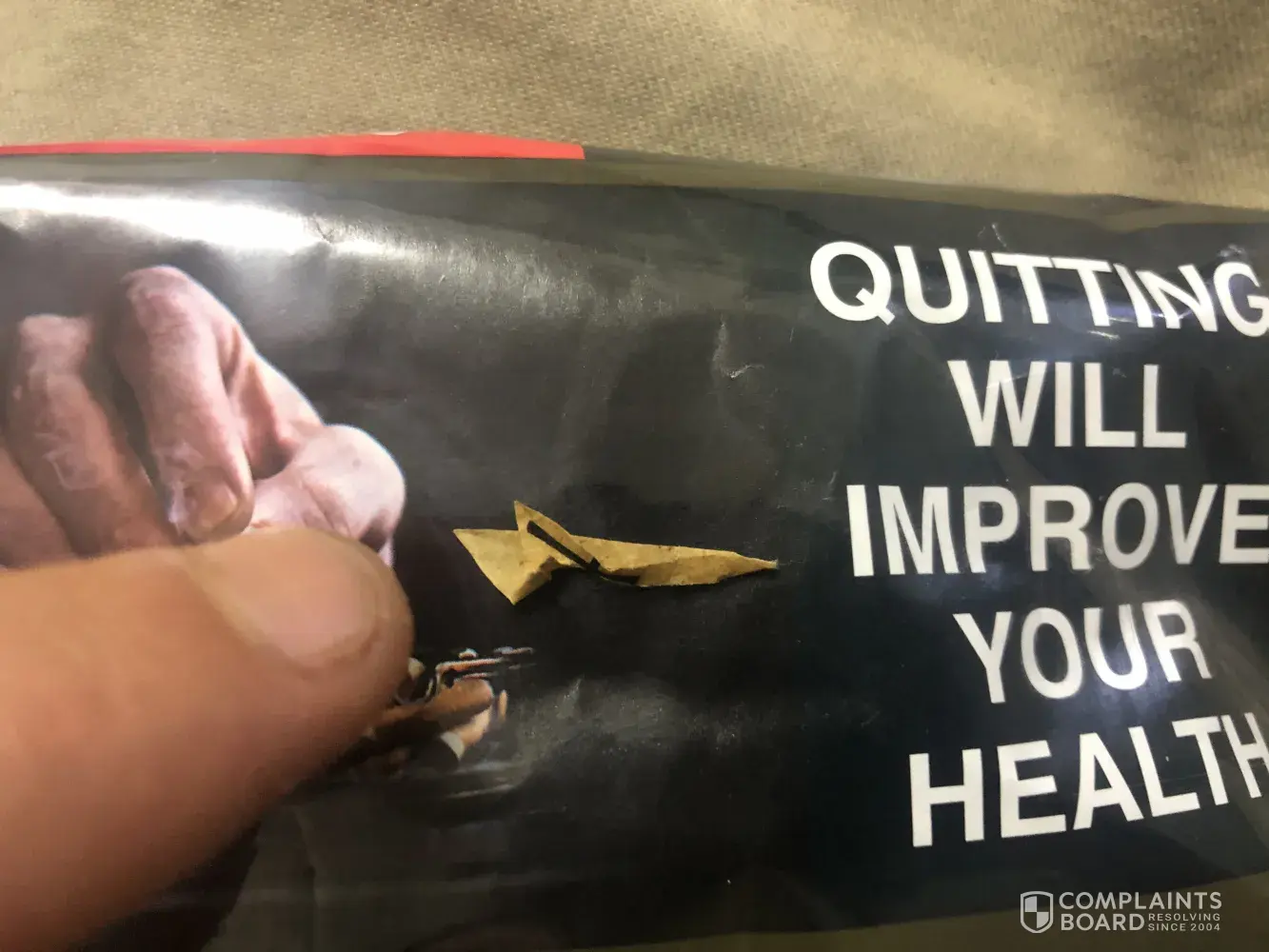 I bought this pouch of jps blue 25g tobacco yesterday 23rd September 2021. There was shredded cardboard in the actual tobacco. I can't afford another packet so I took photos as proof and I will smoke the rest of tobacco as I don't have any money to buy anymore. I am disgusted in this incident as I'm a regular jps brand smoker. Look forward to hearing from you.