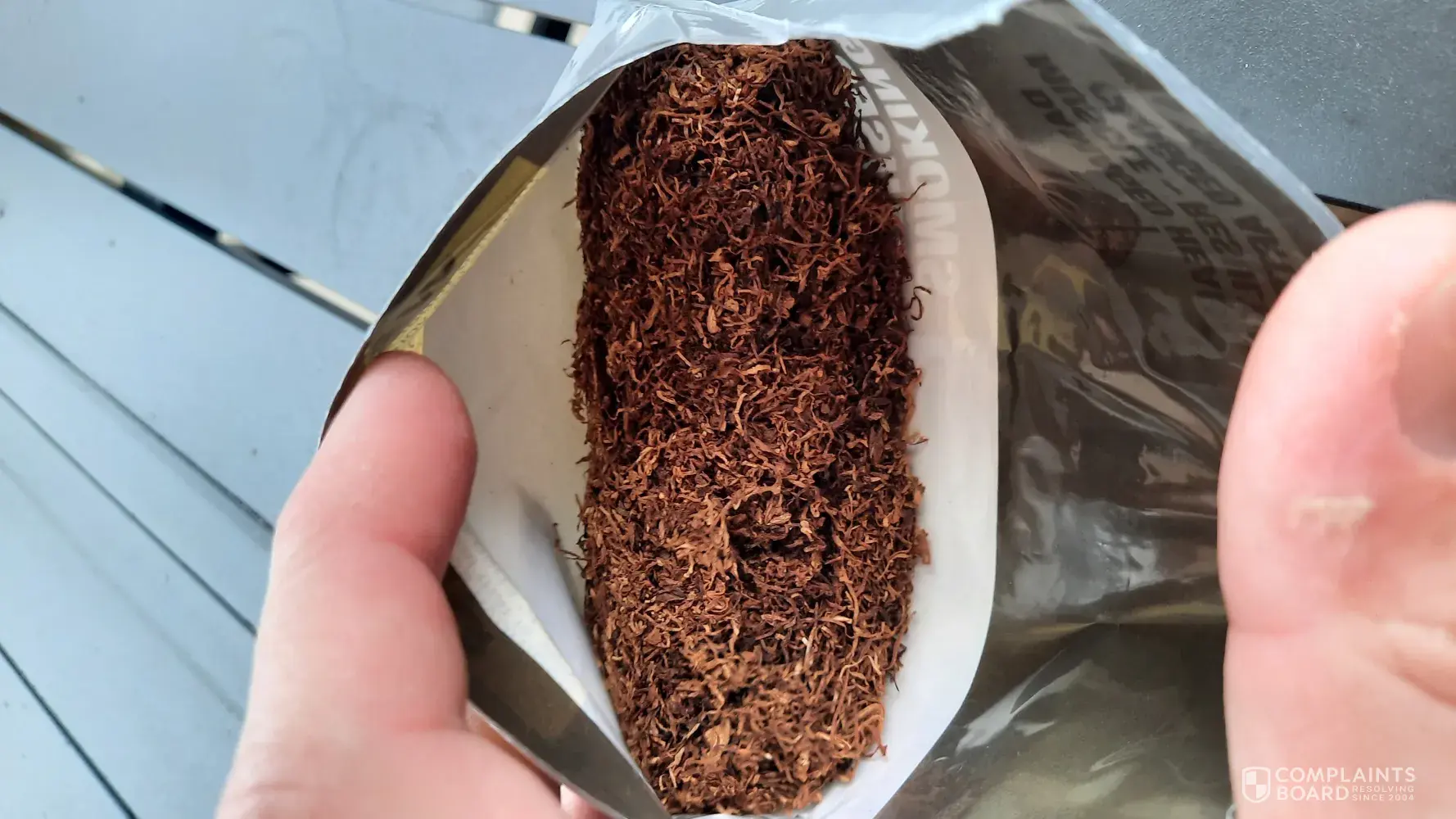 I've been getting pouches full of bywaste (ie, sludge as pictured), stem and unburnable green tobacco for well over the last year! every pouch I get I have to throw a lot out because it is unrollable, or un-smokable either stem or just clumpy tar matter, it is unacceptable for the amount of money I pay, this product should be of a higher (and more consistent) quality.
