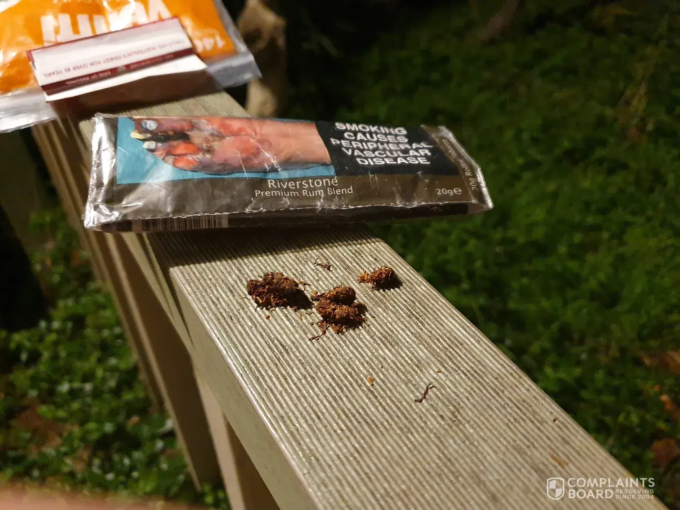 I have purchased two 25g pouches of riverstone this week both from different stores. The first was like the sweeping off the floor. There were many pieces of unprocessed tobacco leaf. It was harsh and had no automatic smell or flavour. There was definitely no rum flavour at all. It was crap. Second pouch no rum flavour. Harsh and wasn't blended. It was also dry and full of crum in the bottom of the pouch. Taste like crap. I can not believe that it was able to leave the facility were it was blended and packaged. I smoke bank for many years. Now that it is been priced out of the market by the Australian government. I replaced it with riverstone. It was a nice blend and consistent. But going by the last two pouch. I'm starting to believe that no one cares at imperial tobacco any more about the above standards they always were renowned for. Someone should be ashamed to allow such disrespectful low standards creep in.