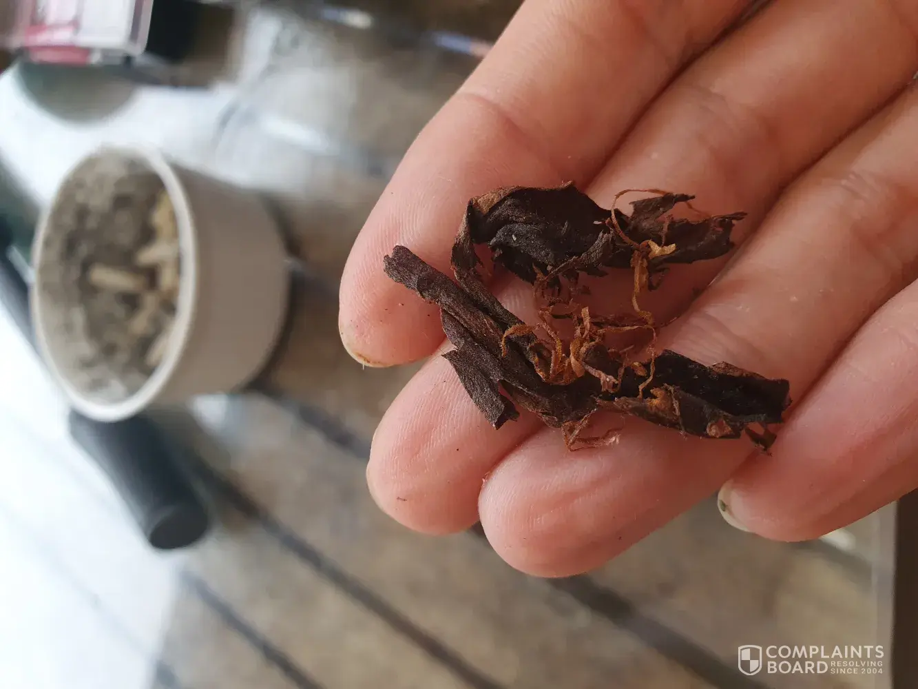 We have always purchased your Tabacco and becoming disappointed not in the taste but the 20g pouches and not being impressed by the increased number of stems within the tobacco but today finding a massive Rock like clump within the tabacco that would counter for a lot of the weight. Being how expensive it is I hope it can be rectified I have added a photo for you to see