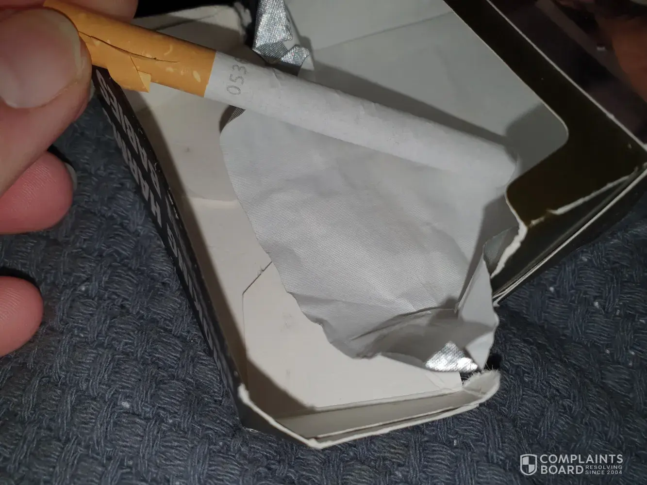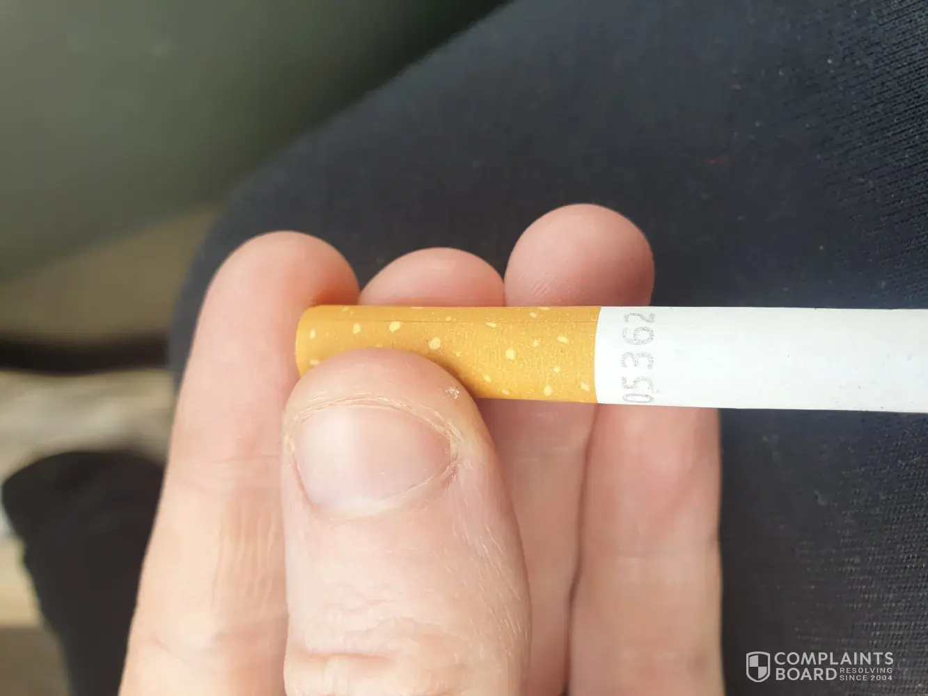 I'm very disappointed as I pay enough for cigerettes as it is without opening the packet and having one that I've noticed so far that is ruined. The barcode number is 9327329010994. Very disappointing and very unhappy my email is [protected]@gmail.com. I would love an explanation and compensation for this default as id consider not buying jps products any longer.