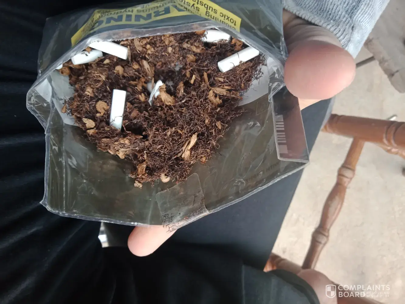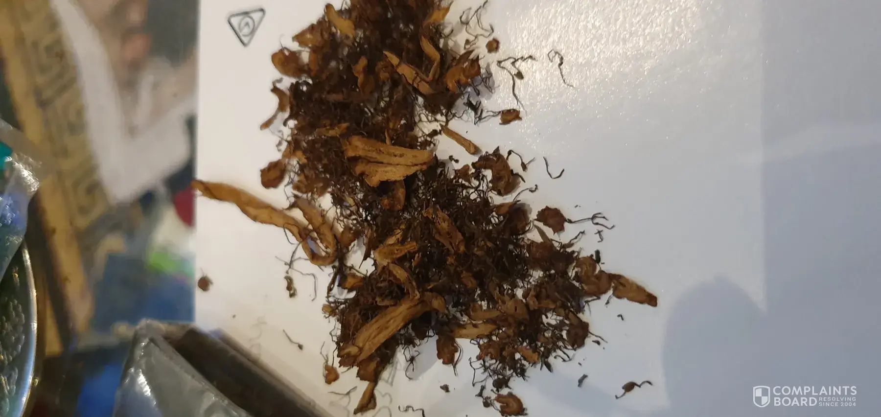 I purchased a 15g pouch of tobacco and it had a lot of thick brown cardboard type material mixed in with the tobacco. I believe it may be due to bark or off cuts from the tobacco. It was disappointing as It ended up being about 30% of the pouch and tobacco isn't cheap in Australia. My local tobacconist would not refund my money or exchange the pouch. I would like to be reimbursed