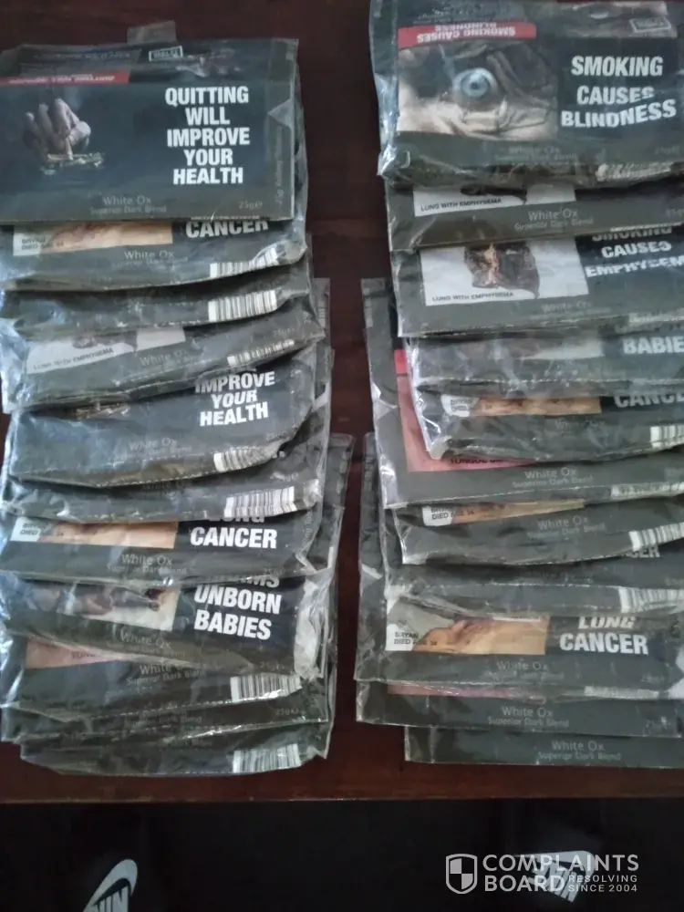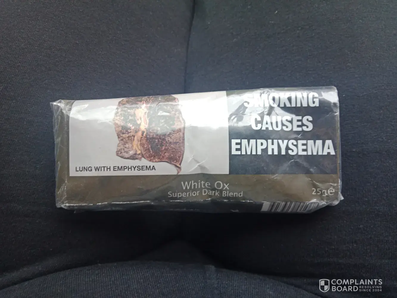I have purchased a 25g white ox tobacco bar code 9327329010758... The other day from local.. Very disappointed in the crap bark that was in it. As a long loyal customer of your brand I wish to be compensated even a little for my disappointment if your product. Which I have posted the item in question back too you.. And waiting for your reply.. Promptly.. And if satisfied with reply so I could continue too enjoy and recommend your brand. Thank you