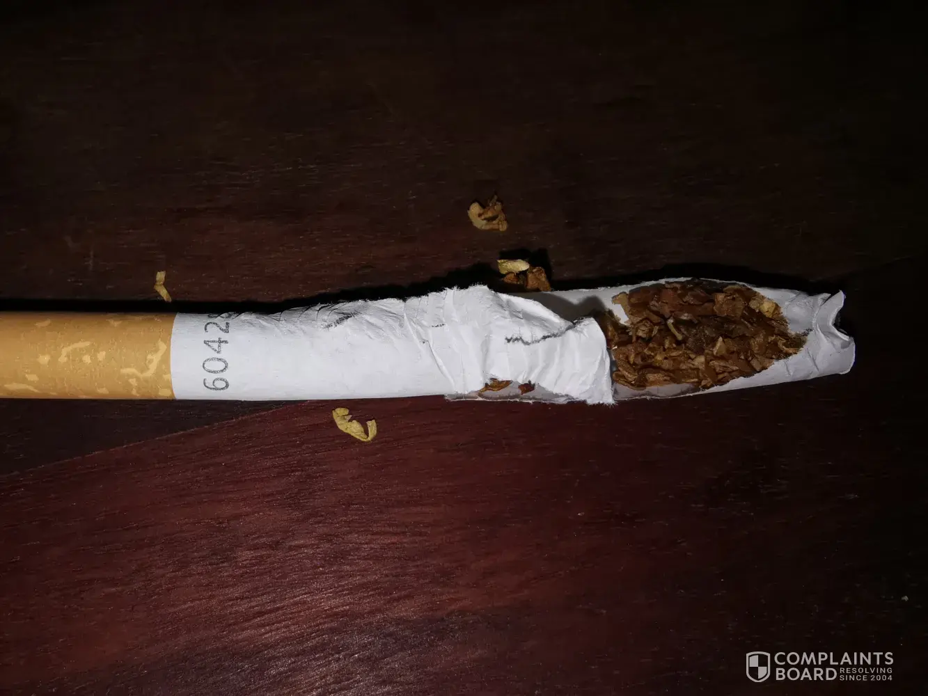 When I opened the packet of smokes every one of the filters had a hole in the tip and the cigeretts the self's had hardly any tobacco in them
