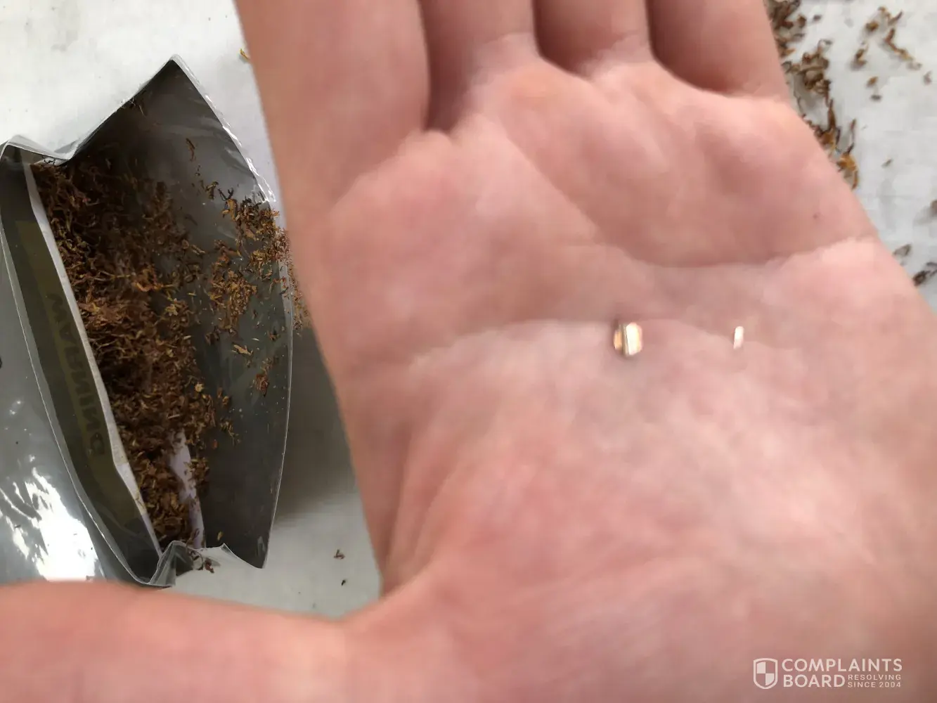 I have been a consistant customer for years now but i am getting sick and tired of purchasing your tobacco only to find that its filled with lots of barky peices in every single pouch! At first i wasnt to fussed as these things happen but now this is an every pouch occurance and i have notticed there are more and more in every pouch!