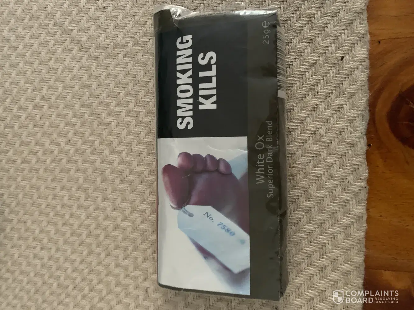 I will be taking this even further than here if one, i don’t hear back from anyone once again regarding my complaint and two, if I am not compensated in some way whether I am sent two replacement 50g pouches of White Ox Tobacco or given a refund for them both because this is disgusting!
