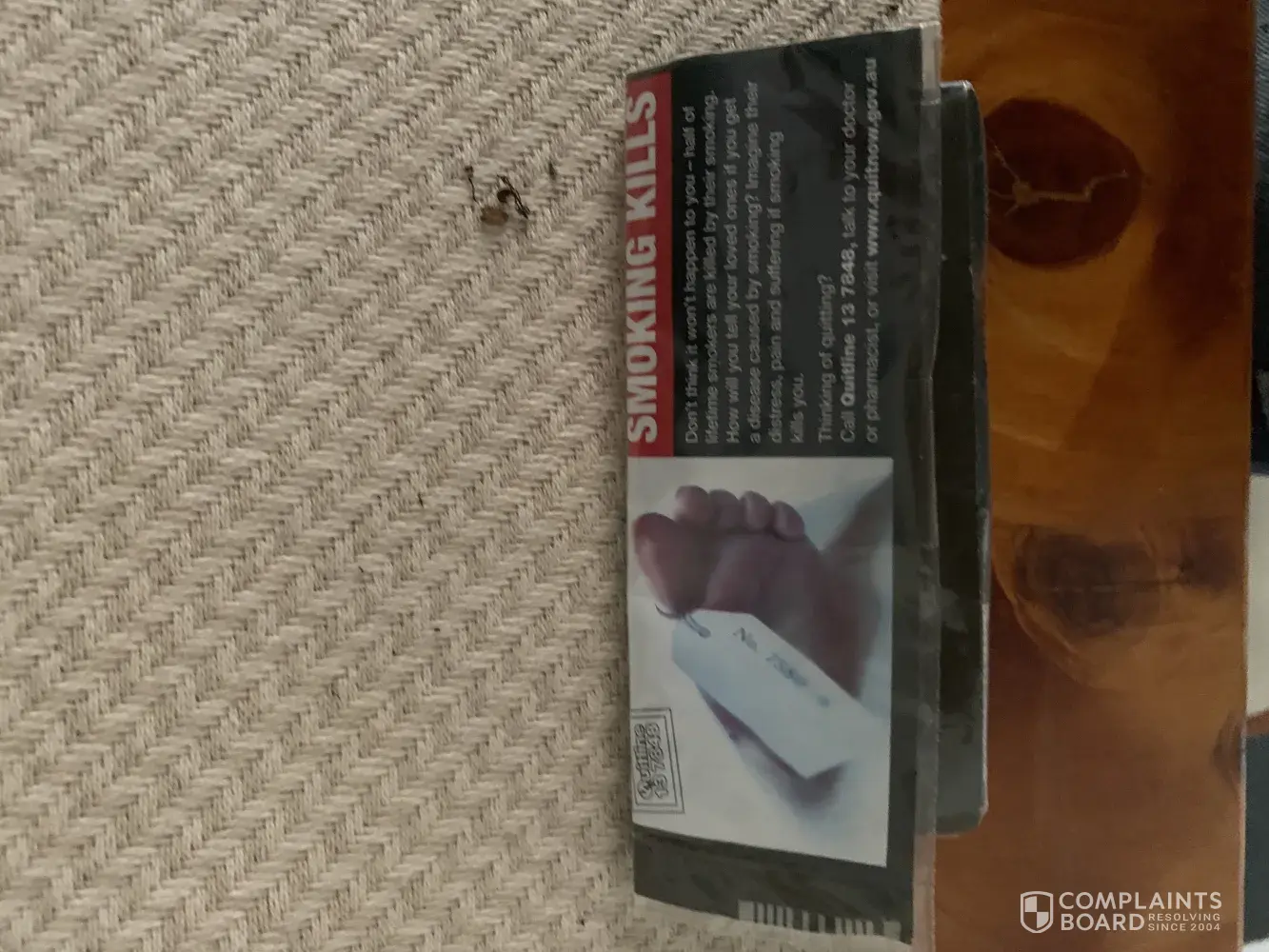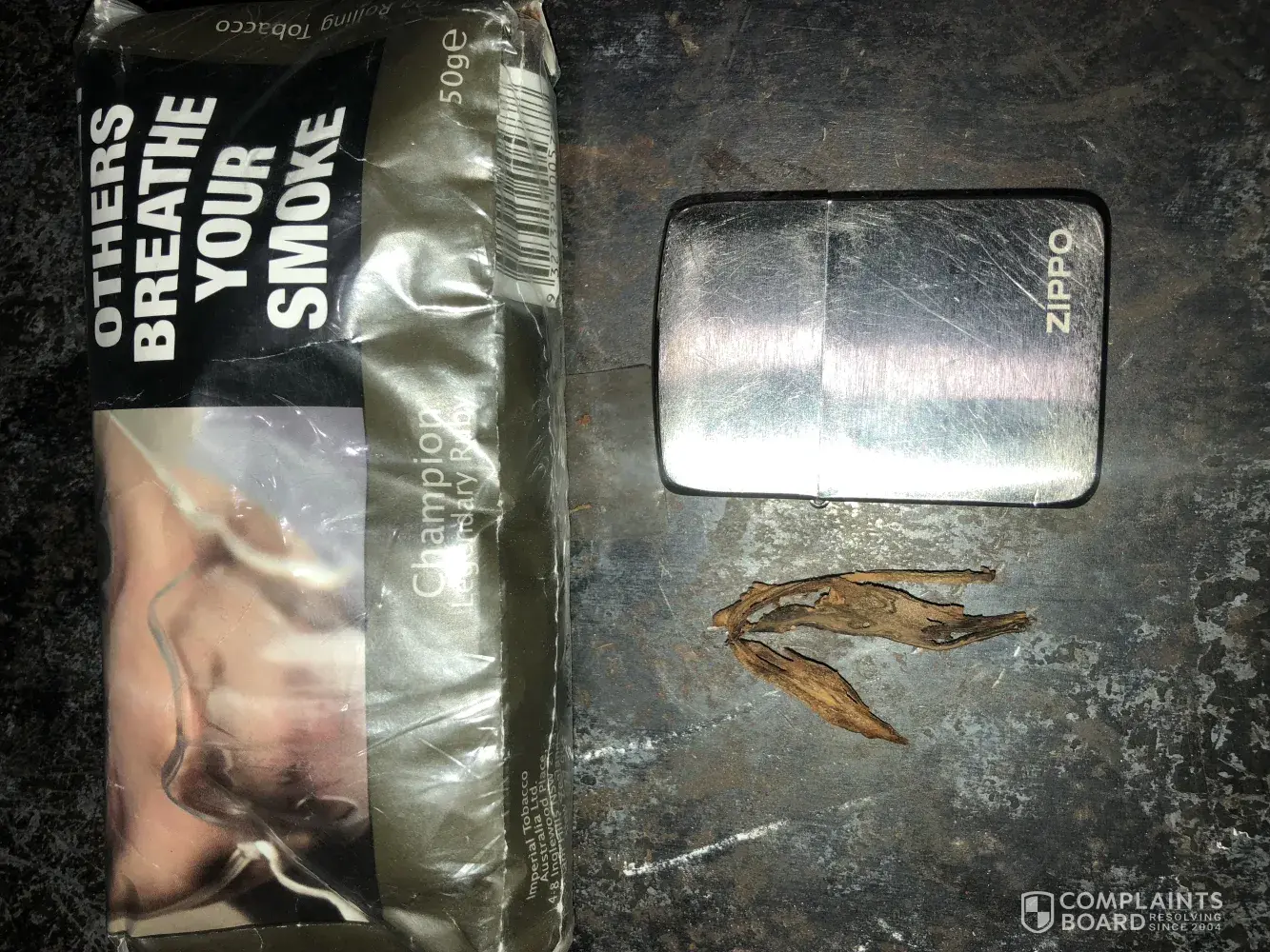 When purchasing last pack and opened it all the tobacco was really fine and small compared to normal. It was like crumbs in the bottom of the packet but the whole packet was like it. Request replacement or money back. As tobacco is so costly I cannot afford to post for proof as I will not have any to smoke and expect quality tobacco for this price. Purchased on the 5/1/2019. from Woolworths Wynyard Tas.