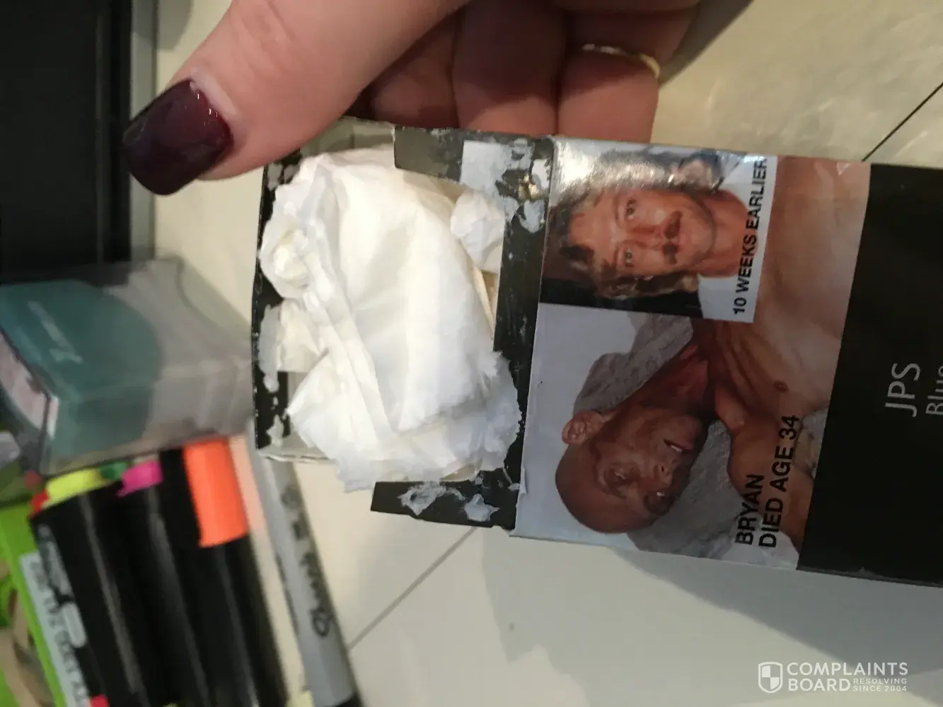 ‪this morning I went to my local service station before work. I had paid for petrol and brought a 20 pack of what I believed to be JPS blues. When I got to work I had trouble open my pack and needed a Stanley knife to open it and when I did to my surprise it was a packet full of tissue. I rang the service station straight away and advised them I would be in straight after work to swap the pack of tissues for a pack of cigarettes I had paid for. When I got in there the staff had to tell me that they were not allowed to give me my packet I had paid for because they are not responsible for the faulty tobacco product, what I was telling them was highly unlikely to be happen and they won't be given back their money. I reminded them that there was no tobacco in the packet, I wasn't a liar and the cost should fall on the business not the customer. They gave me your number and the customer service number for their company. Naturally I was not leaving the station without a pack of cigarettes as it was the day before pay day and I had no money to buy another pack so I rang their customer service team because i was not going to be put out because of their policies and the obvious gross neglect to the quality control of the packaging of this product. After the drawn out conversation between myself, team leader and customer service team. The customer service team had made up there mind and said I could get the pack that I had paid for. Low and behold the service station had run out of JPS blue 20's and gold 20's, I ended up leaving with a completely different brand in gold so not what I had originally paid for. At this point I was just happy to have cigarettes because I had been waiting all day. More to the point of my comlaint with you is because I strongly believe that quality control procedures and machinery need to possibly revised or replaced as it has failed badly in this case. For a sealed cigarette packet full of tissues with the lid glued shut and the plastic seal on the outside in contact there has to be some issues that need to be rectified. I have all photos and reference numbers and proof of purchase if needed but the issue needs to be rectified. ‬